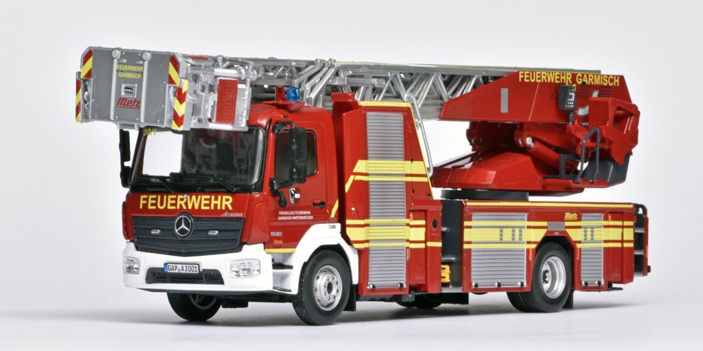 IXO heeft een erg leuk model gemaakt van een Mercedes-Benz Atego ladderwagen met een opbouw gemaakt door Metz. We zagen het model al eerder in een uitvoering van de Feuerwehr in Hoffheim, nu is er een versie gemaakt in de kleuren van de gemeente Garmisch. Het model verschilt vooral in kleurstelling van de eerder uitgebrachte variant, maar het blijft een fraai model. De ladder kan uitschuiven en er zit relatief veel metaal in het model verwerkt. De schaal van het model is 1 op 43. (PGe)