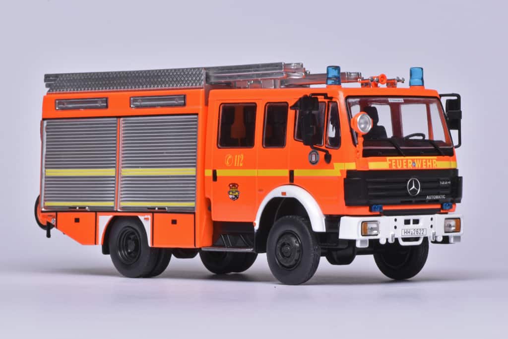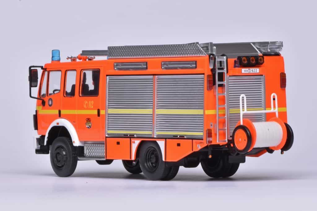 Van Ixo komt deze Mercedes 1224 van de Duitse brandweer. Uit welke stad, dat vermeldt de beschrijving niet, maar de HH op het kenteken zou Hamburg doen vermoeden. De opbouw met onder meer het grote zoeklicht is typisch Duits. De schaal is 1:43. (RS)
