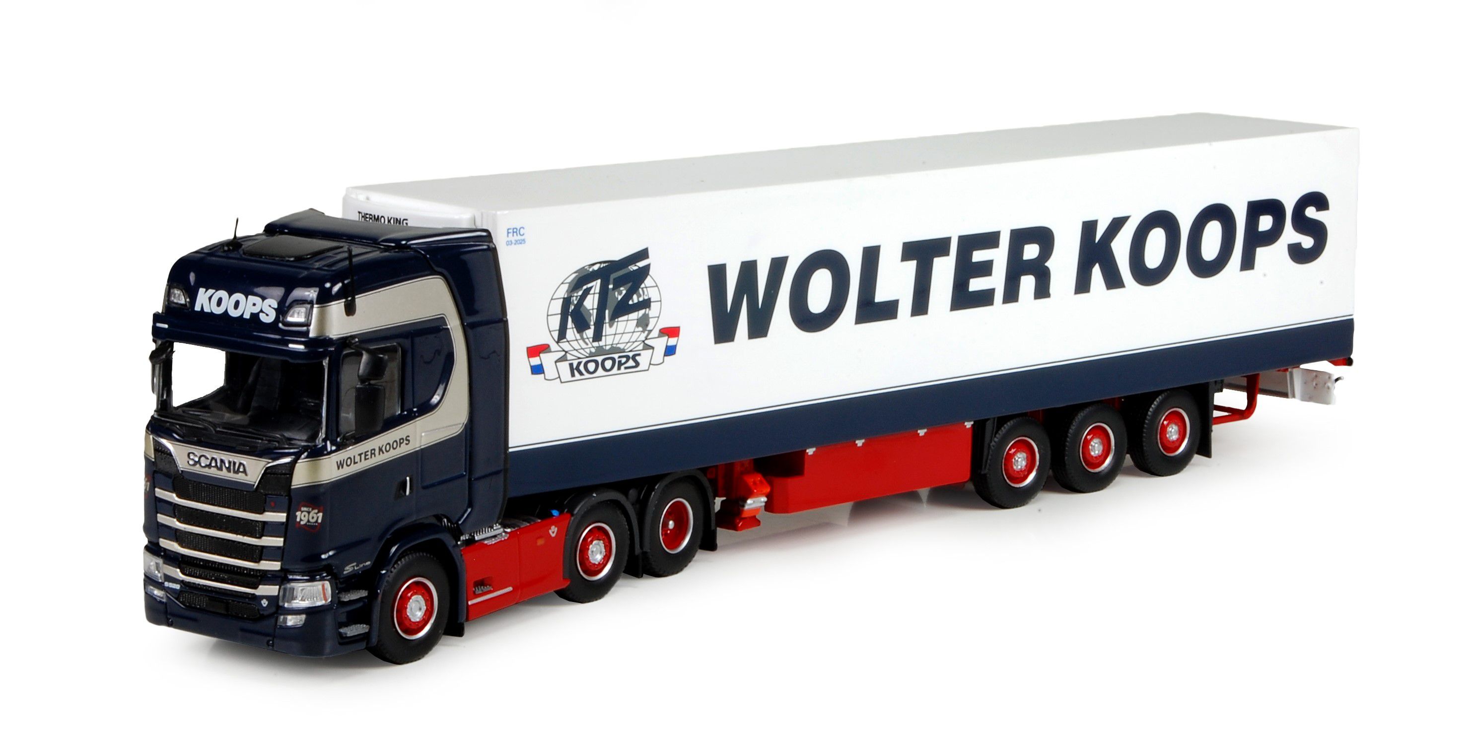 Transporteur Wolter Koops uit Zeewolde is uitgegroeid tot een ware gigant met vele honderden trucks en opleggers. Een van de merken die het bedrijf voert, is Scania en daarvan maakt Tekno deze S520 Highline 6×2 trekker met drieassige koeloplegger.