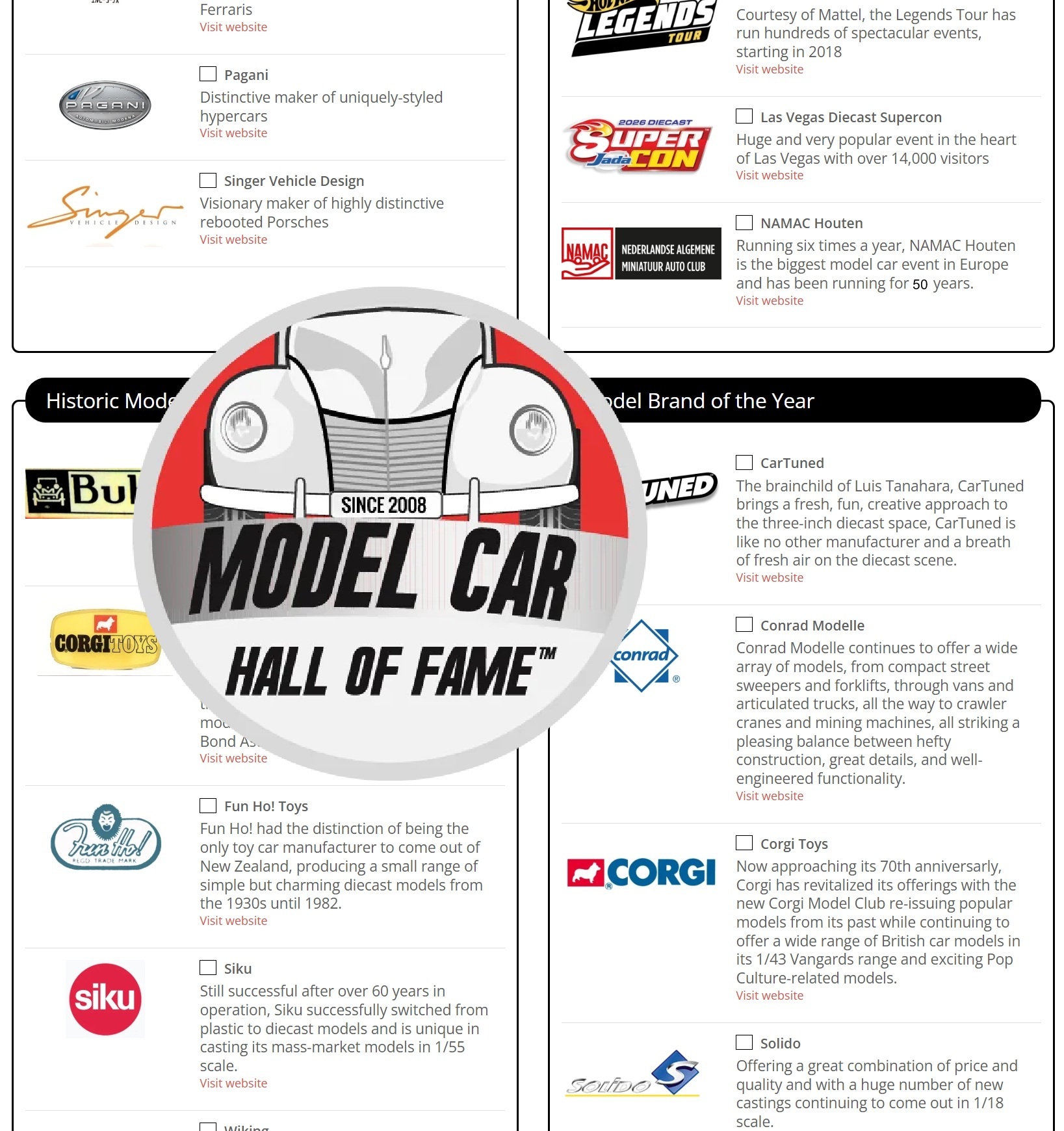 Al vele jaren organiseert het Amerikaanse Model Car Hall of Fame een jaarverkiezing. Dit jaar voor de zestiende keer. Er maar liefst in drieëndertig categorieën om op te stemmen en dat zijn er dus drie meer als vorig jaar.