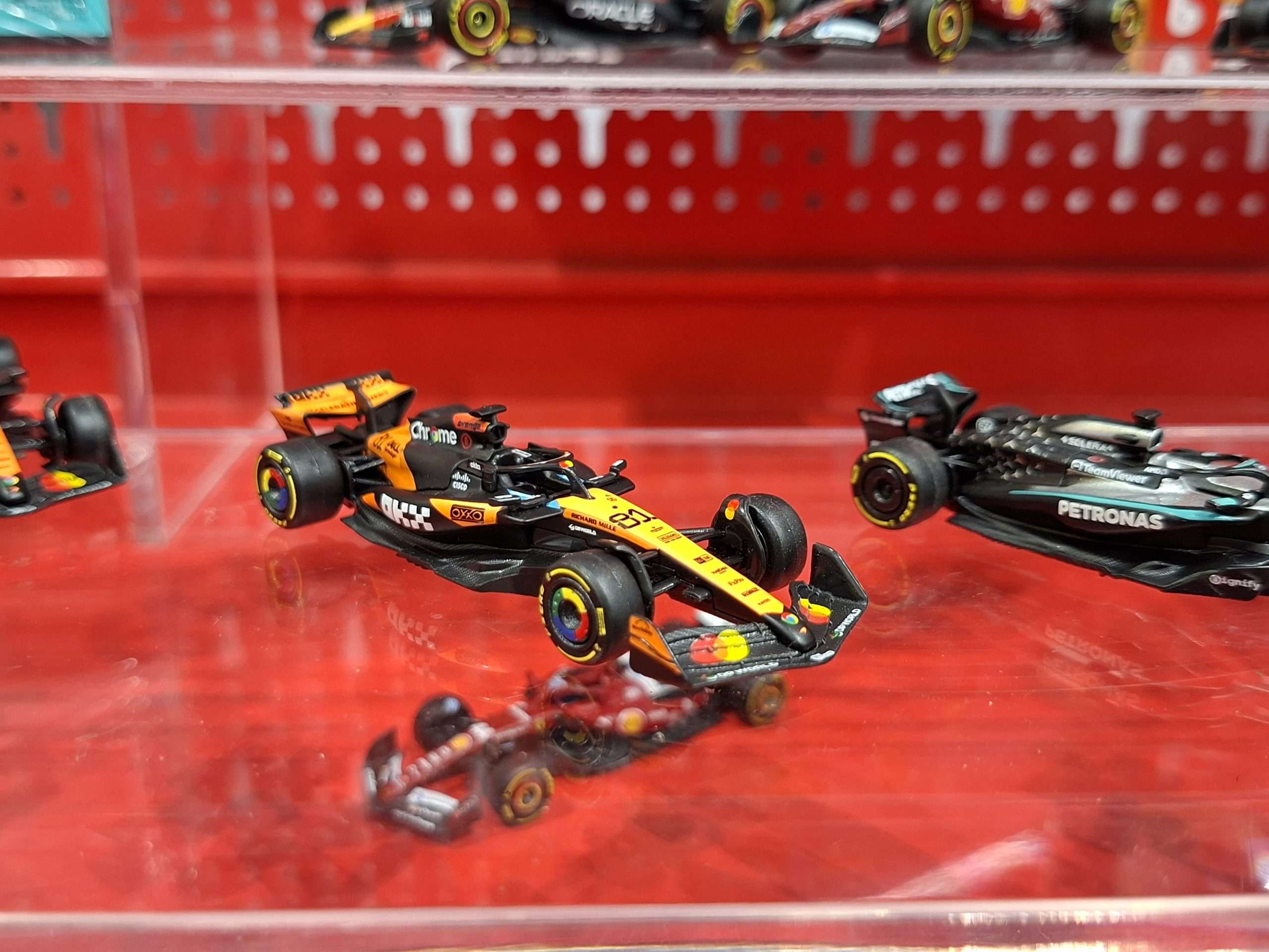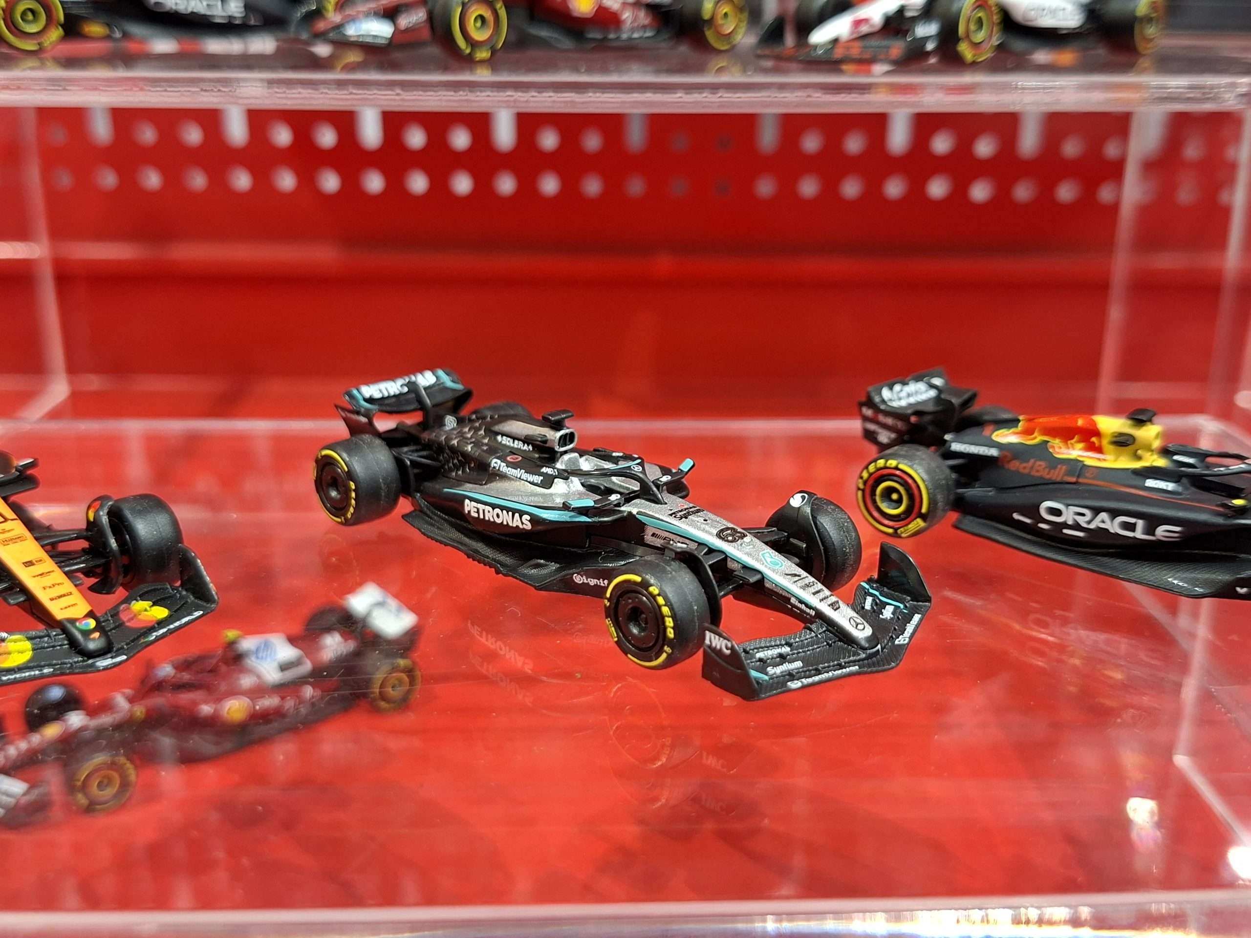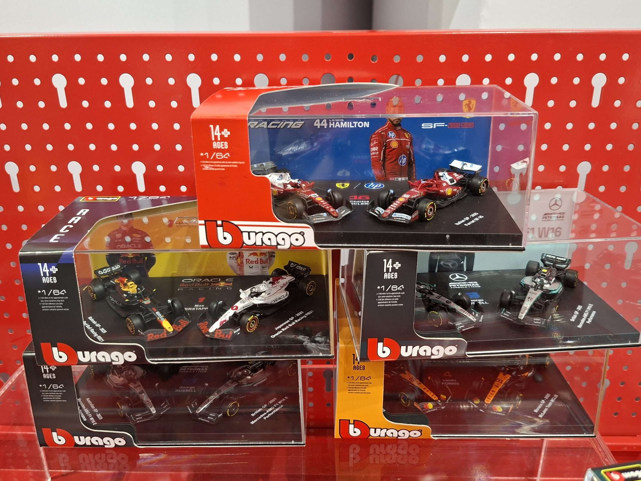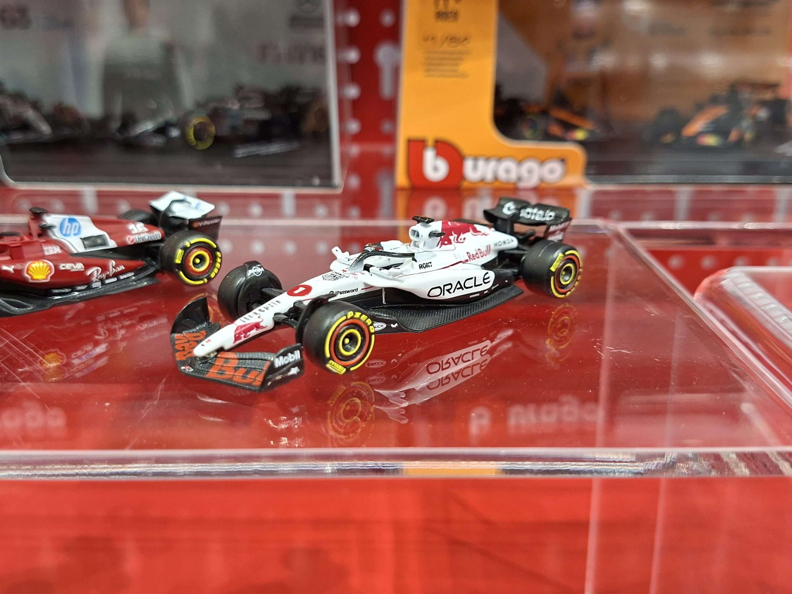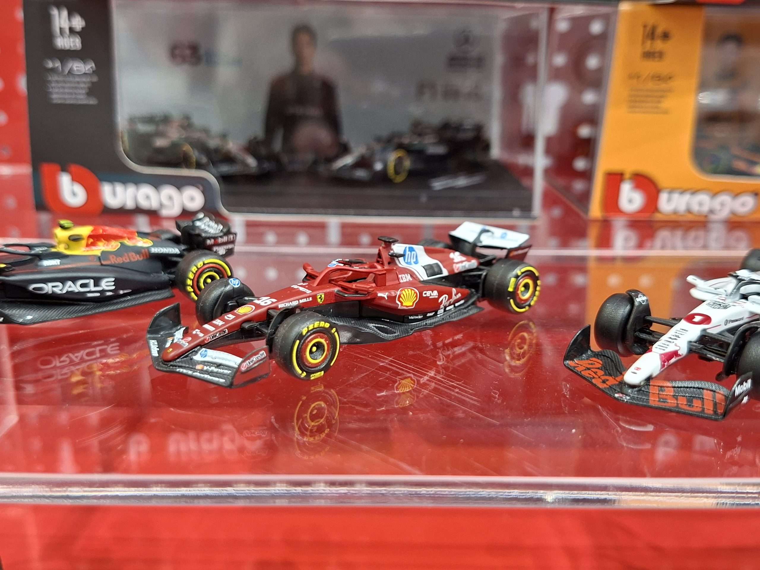Op de beursstand presenteert Bburago in 1:64 alleen zijn nieuwe serie Formule 1-modellen, maar die zijn al sinds eind 2025 leverbaar. Wel nieuw is dat er naast de blisterverpakkingen ook een variant komt met modellen in een wat mooier vitrinedoosje. Ook nieuw zijn sets met twee auto’s. Zie de foto’s voor enkele voorbeelden.