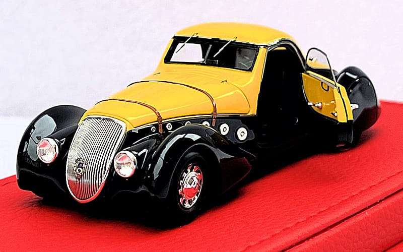 Erg verfijnd model van de Peugeot Type 4 Bey de Tunis 1892 in een oplage van slechts 220 exemplaren. Een Peugeot met “Suicide doors”, jawel dat is deze Peugeot 402 darl’mat coupe 1938 Pourtout . Hiervan is ook een spyder gemaakt, maar daarvan lijken de deuren niet geopend te kunnen worden .