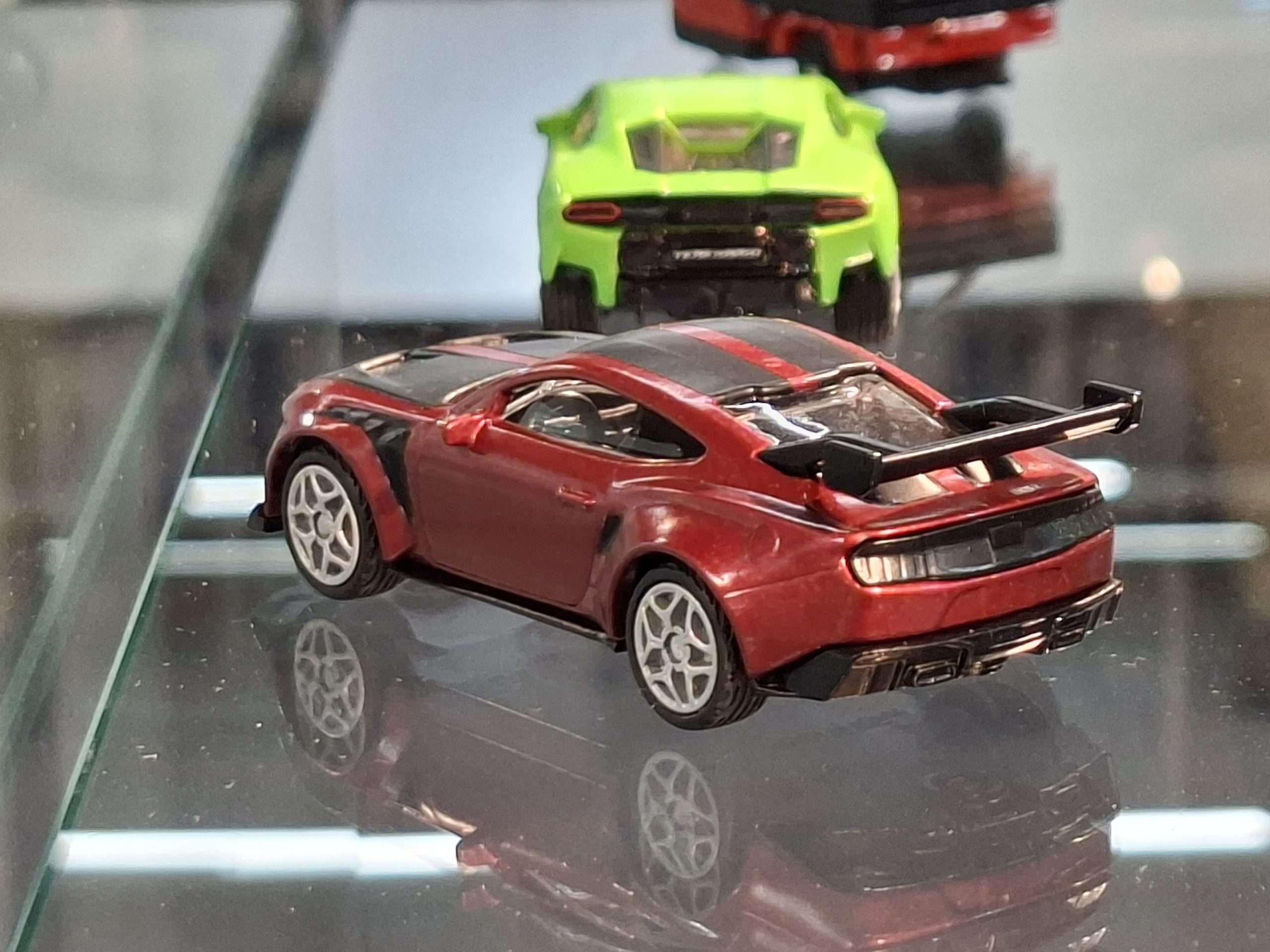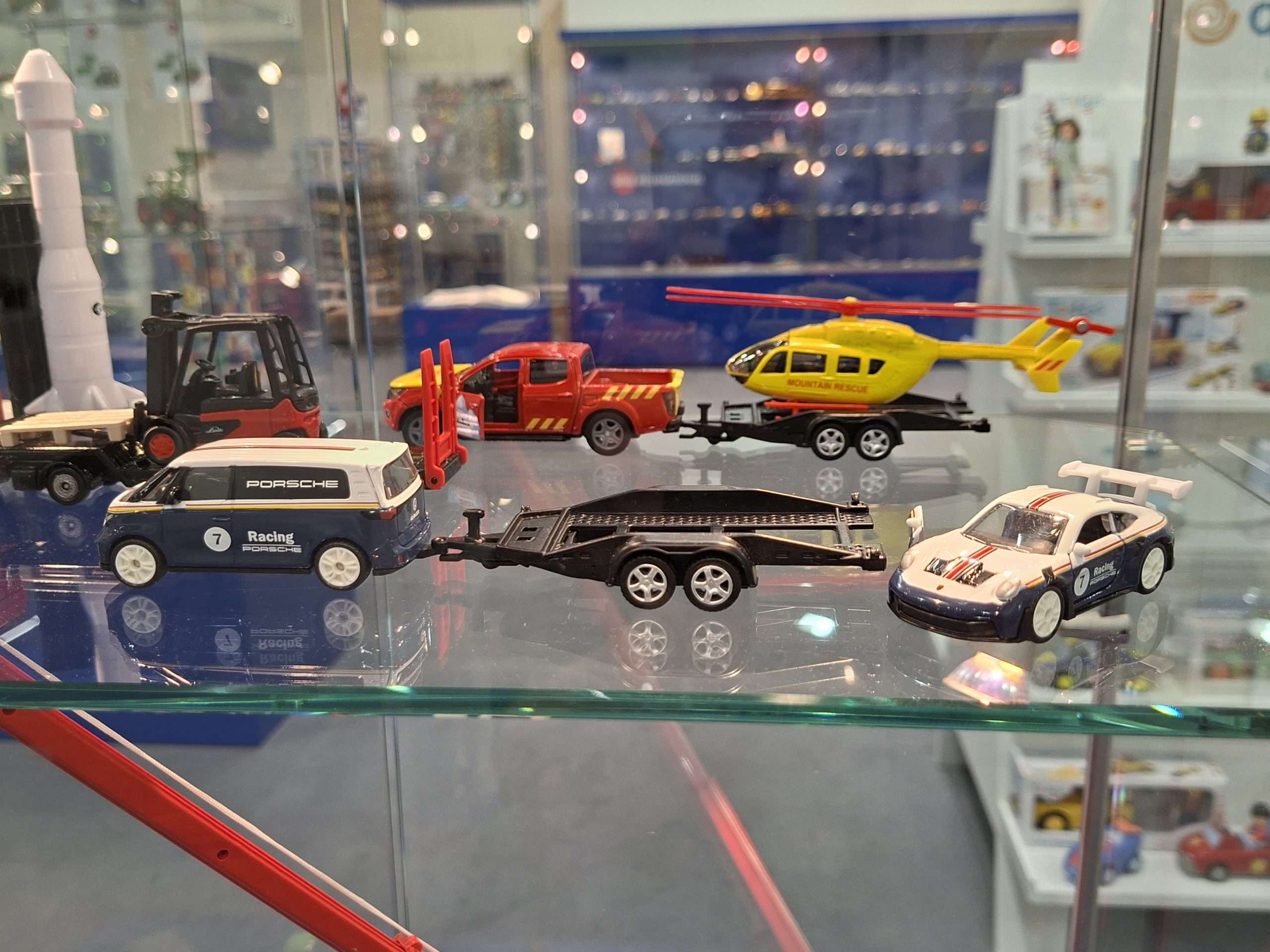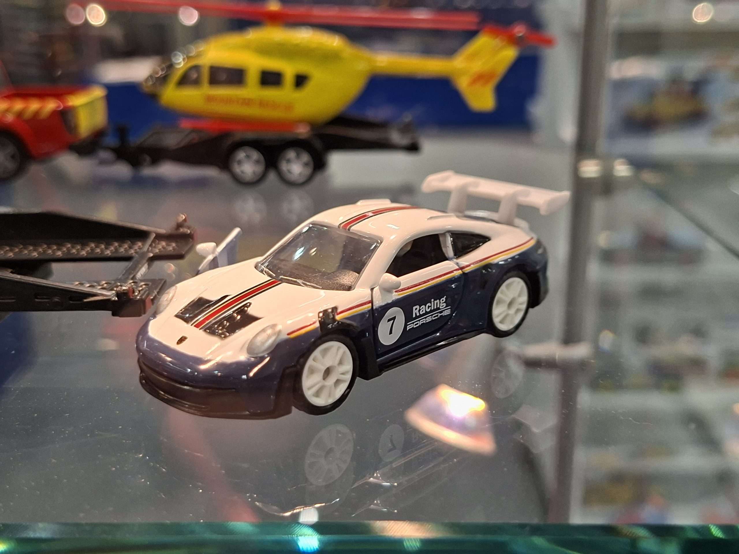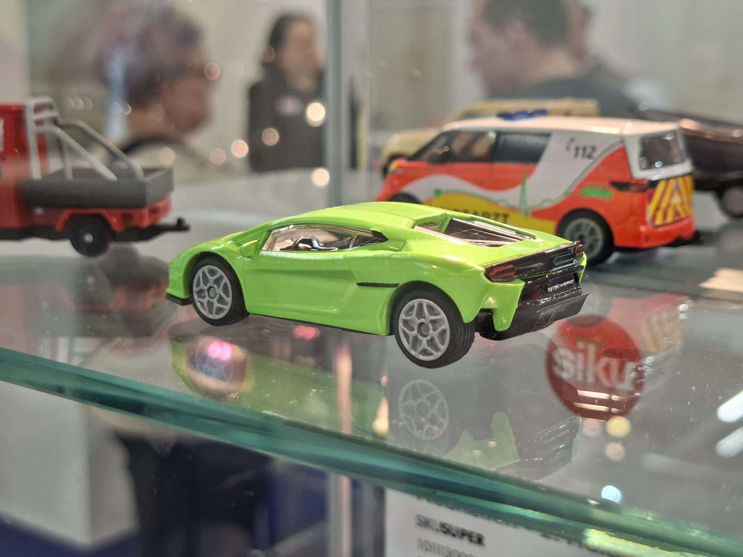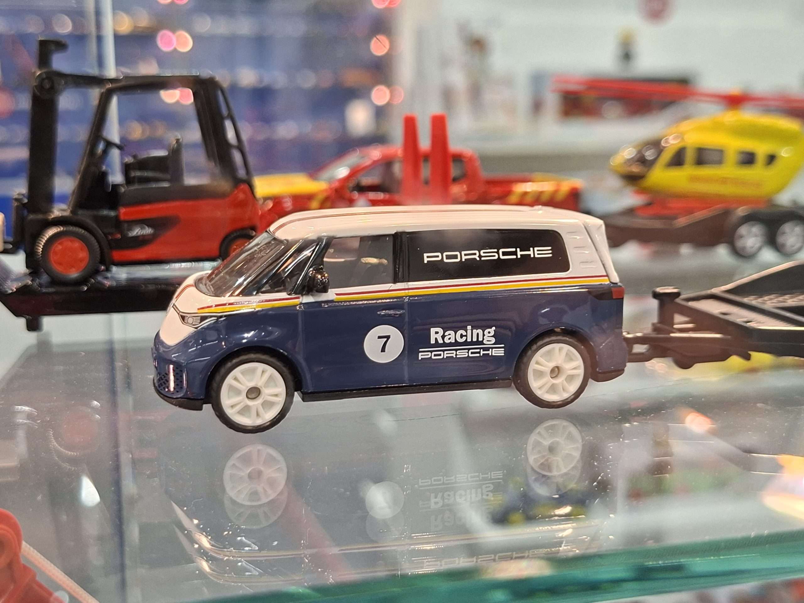 SIKU heeft dit jaar weer eens vrij veel nieuwtjes in de traditionele schaal 1:55. Aan volledig nieuwe modellen zijn dat de Aston Martin Valhalla, Ford Mustang GTD en Lamborghini Temerario. Al deze modellen zijn gepland voor de tweede helft van 2026. Verder zijn er een aantal nieuwe kleur- en uitvoeringsvarianten. Meestal laten we die even voor wat ze zijn, maar deze is te interessant om niet te vermelden: een Volkswagen ID.Buzz met op een trailer een Porsche 911 GT3 RS. Het wordt niet vermeld en er zijn ook wel wat verschillen, maar deze set is natuurlijk duidelijk geïnspireerd op de combinatie die Porsche Centrum Gelderland heeft rijden.