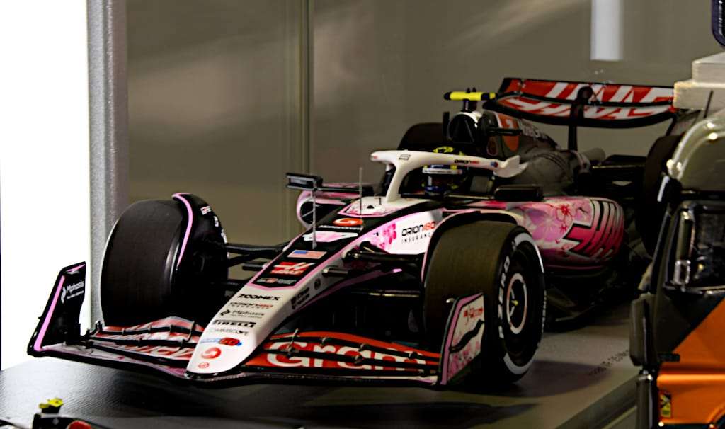 Iets betaalbaarder zijn de 1:18 Formule-1-modellen van de Haas en Red Bull en de rally-uitvoering van de Lancia Delta S4. (BV)