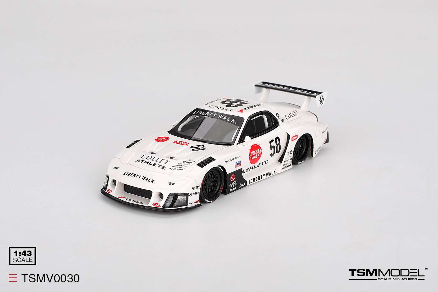 Dit zijn allemaal miniaturen uit hun Scale43 serie. In hun Velocity Series is er ook een aankondiging. En wel deze Mazda RX-7 LB-Hinomaru . Hierbij moet je goed door de bodykit heen kunnen kijken om er nog een originele RX-7 uit te halen.