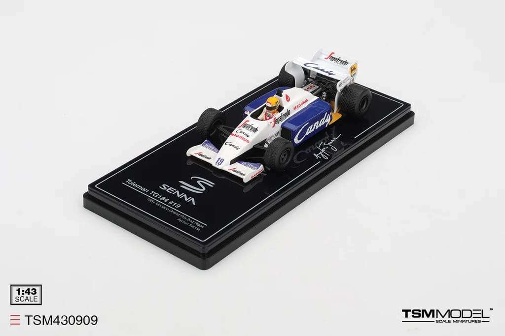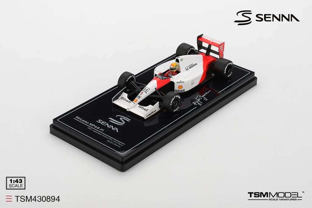 Ayrton Senna was een erg geliefde coureur in zijn tijd. Wellicht daarom dat steeds meer miniatuurautofabrikanten auto’s waarin hij heeft geracet uitbrengen. Zo ook TSM in schaal 1:43.