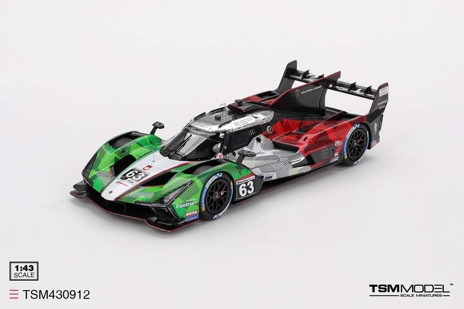Van Multimatic Motorsports worden zowel de #64 en #65 uitgebracht van hun Ford Mustang GT3 zoals uitgedost tijdens de 2024 IMSA Laguna Seca. Ook een opvallende verschijning met een dikke knipoog naar het land van herkomst is de Lamborghini SC63 #63 Automobili Lamborghini Squadra Corse 2025 IMSA Daytona 24 Hrs .