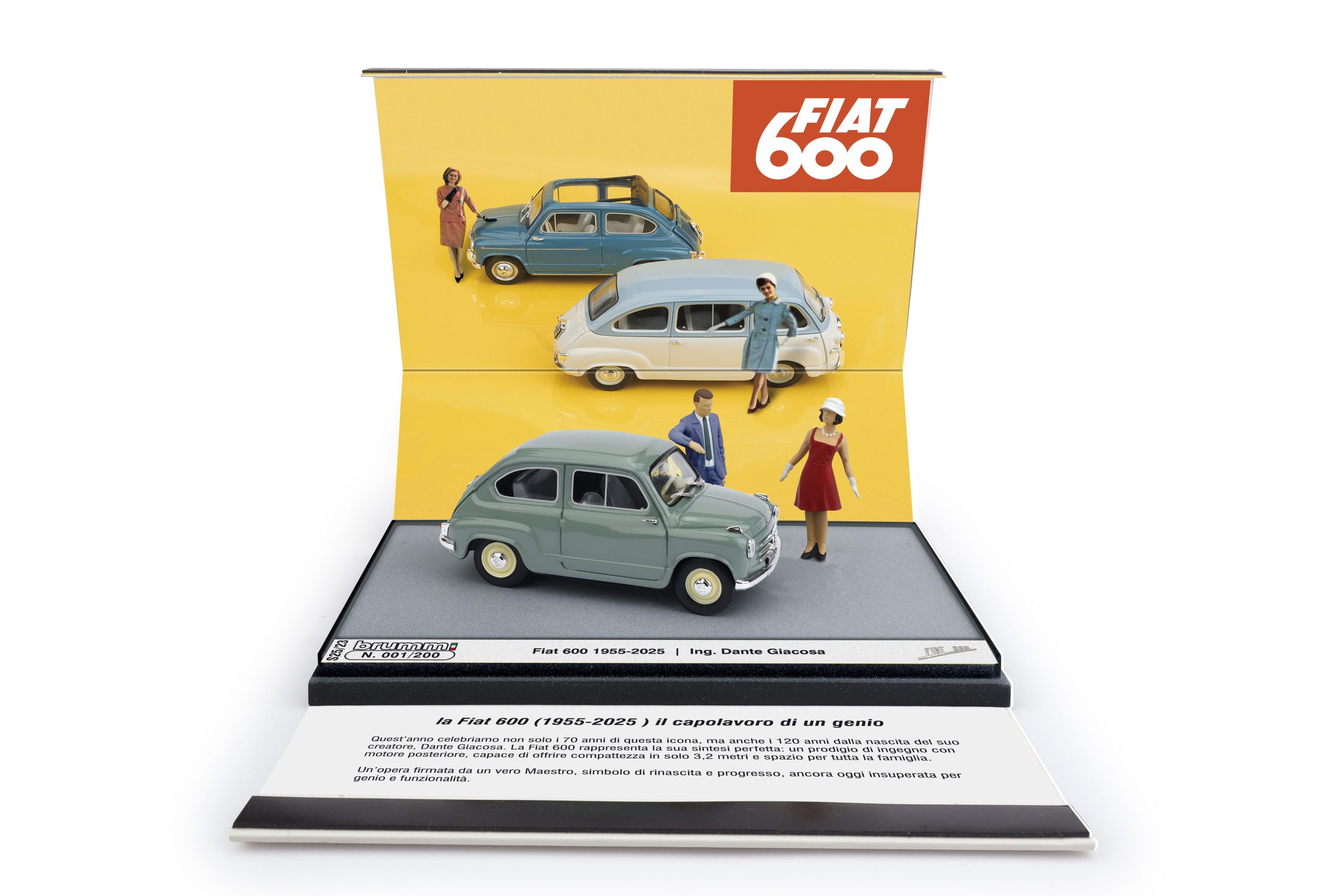 In 2025 was het zeventig jaar geleden dat Fiat de 600 uitbracht. Het is verwarrend, want niet de beroemde 500, maar deze 600 was de vervanger van de 500 Topolino, die in de basis van ver voor de oorlog stamde. In de jaren vijftig en zestig was volgens Fiat juist de 600 de auto die in Italië de massamotorisering moest bevorderen. Voor deze gelegenheid heeft Brumm een prachtig jubileummodel gemaakt, in een beperkte, genummerde oplage. Bij het miniatuur staat de grote ingenieur Dante Giacosa, die onder meer verantwoordelijk was voor de ontwikkeling van deze bestseller, die zelfs tot 1969 in productie is gebleven. (BvdA)