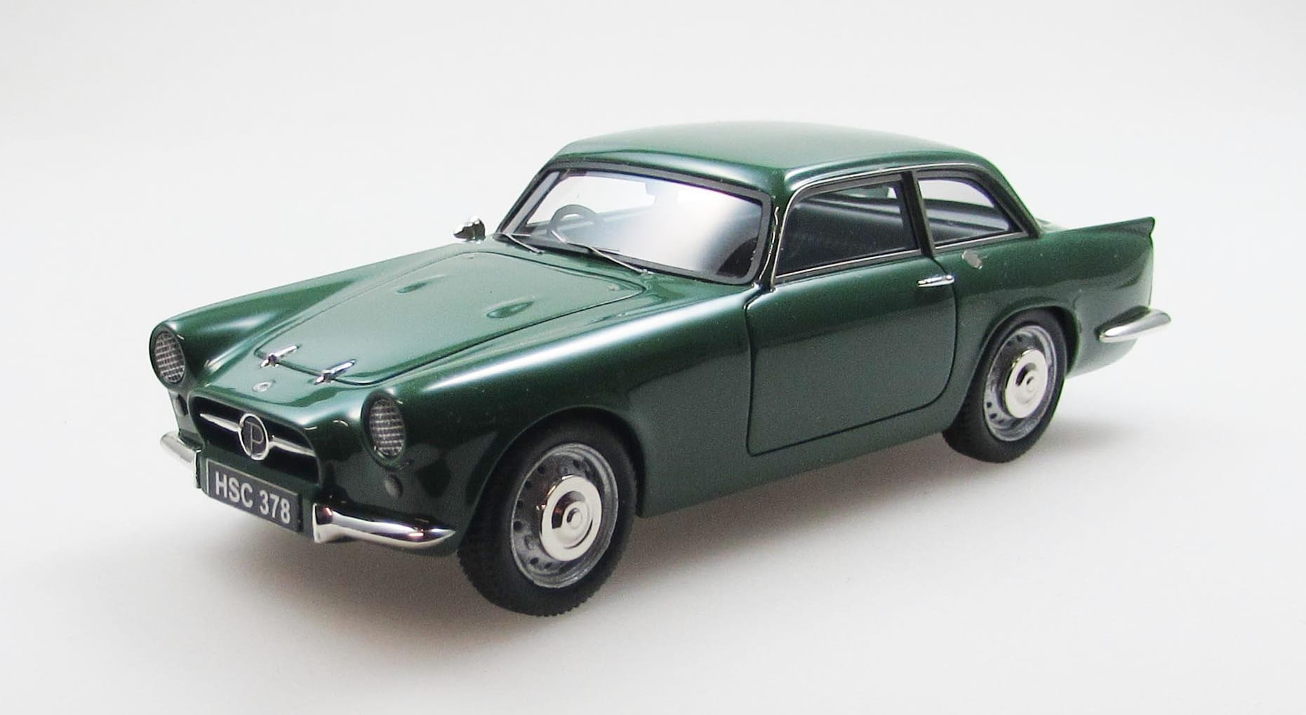 Hij is al eerder aangekondigd, maar nu zit hij er toch echt aan te komen, de Peerless GT van Esval. Het is voor verzamelaars van Britse (sport-)auto’s een welkome aanvulling, want hij is op schaal verder niet te vinden. De Peerless GT is technisch gebaseerd op de Triumph TR3, maar dan voorzien van een gesloten kunststof carrosserie. In 1958 kwam de Peerless op de markt, een jaar later kwam er een verbeterde versie, maar daarna was het snel bekeken. De totale productie was ongeveer 300 exemplaren. (BvdA)