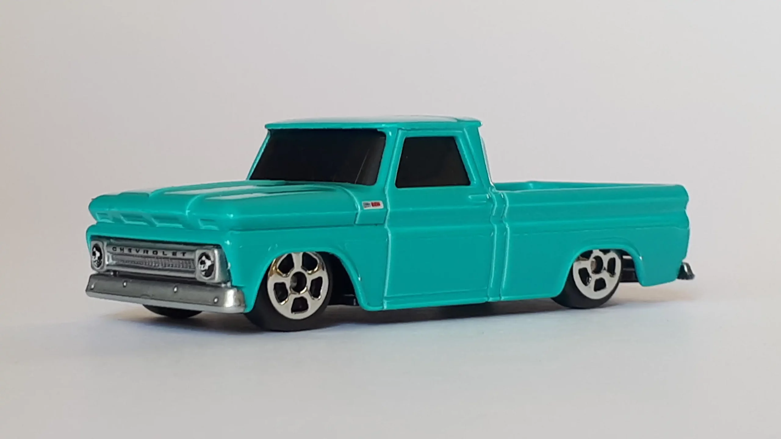 Maisto breidt zijn 3-inch-assortiment verder uit met deze Chevrolet C10 van modeljaar 1965. Ik heb het vaker gezegd bij deze serie: laat je niet teveel afleiden door de wel erg goedkoop uitziende wieltjes. Voor de rest is het namelijk een keurige weergave, zeker voor de letterlijk paar euro die het model kost. Zelfs de opdruk voor de typeaanduiding bij de A-stijl is mooi scherp. Een knutselaar zet er zo een mooier setje onder en dan kan hij gewoon tussen de ‘echte’ miniaturen. (NJ)