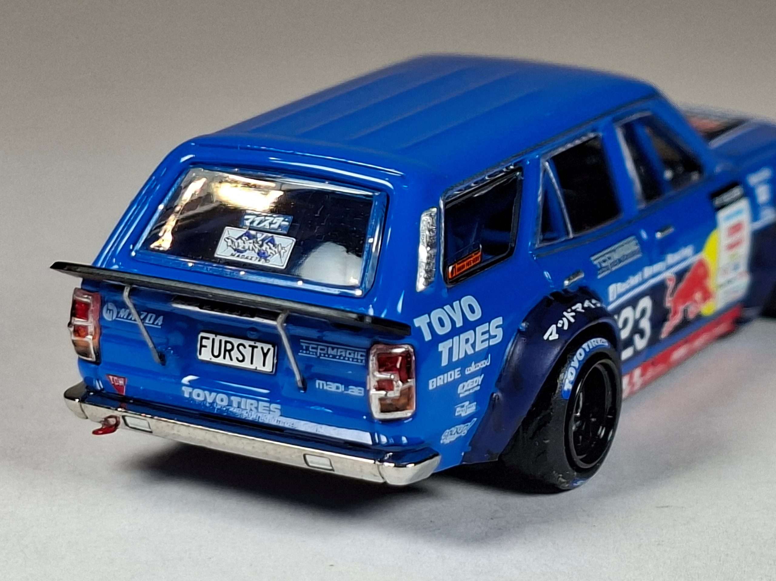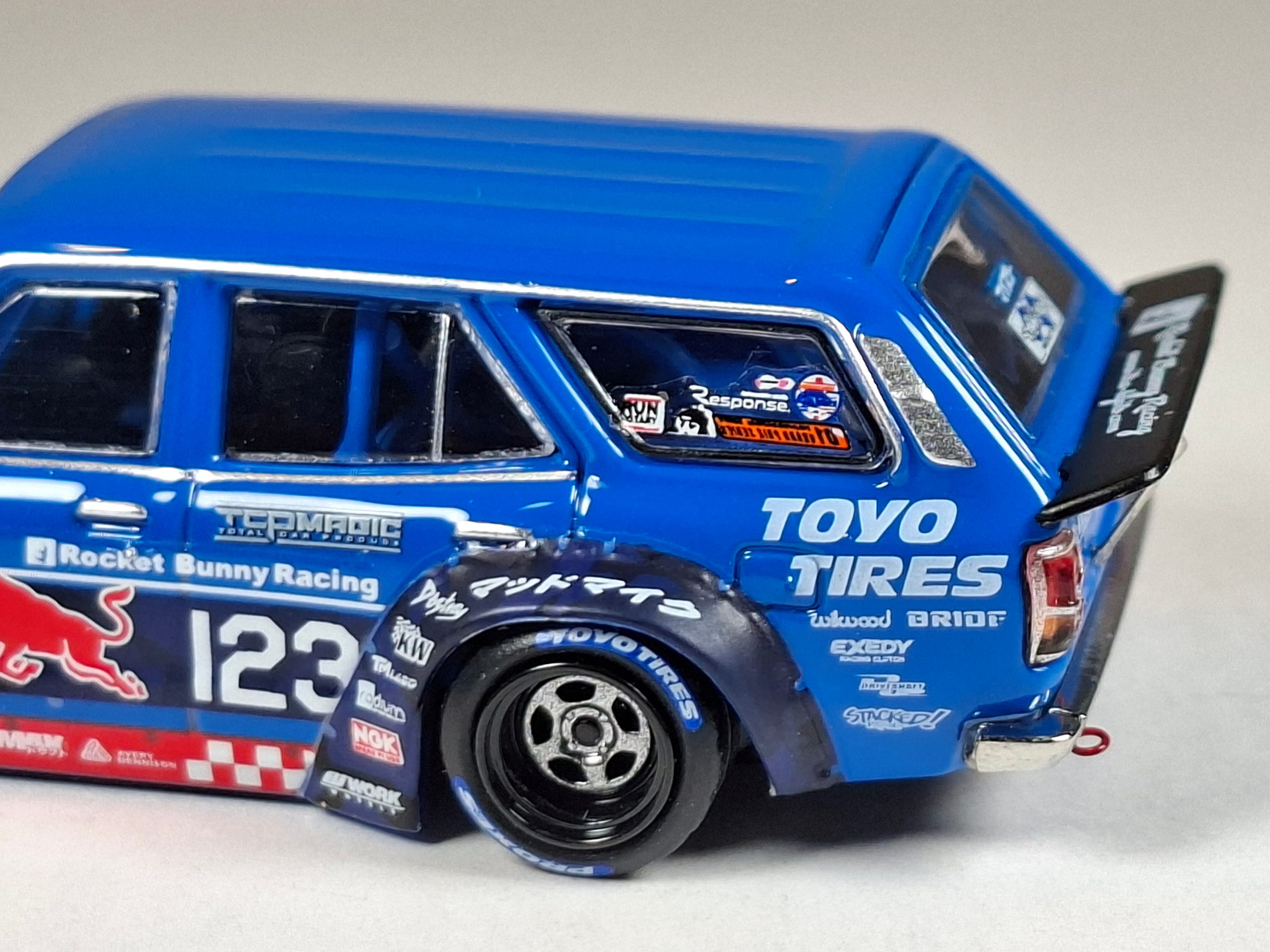 Inno64 komt met een Mazda RX-3 Station Wagon uit 1976, maar niet zomaar eentje. Dit is de auto waarmee Nieuw-Zeelander Mike Whiddett, ook bekend als Mad Mike, deelnam aan het D1 Grand Prix driftkampioenschap van 2024. Hij kocht de auto voor het eerst in 2004, maar moest er door omstandigheden al snel weer afstand van doen. In 2023 kon hij de auto terugkopen. Eerdere eigenaren hadden de stationwagen eveneens voor driftraces gebruikt en daarvoor de nodige aanpassingen gedaan. Mike maakte het project af tot wat de auto nu is, compleet met Rocket Bunny-bodykit van Pandem. De weergave van Inno64 is zeer gedetailleerd. Overigens hebben ze ook nog een aantal vergelijkbare Mazda RX-3 coupés in het aanbod. (NJ)
