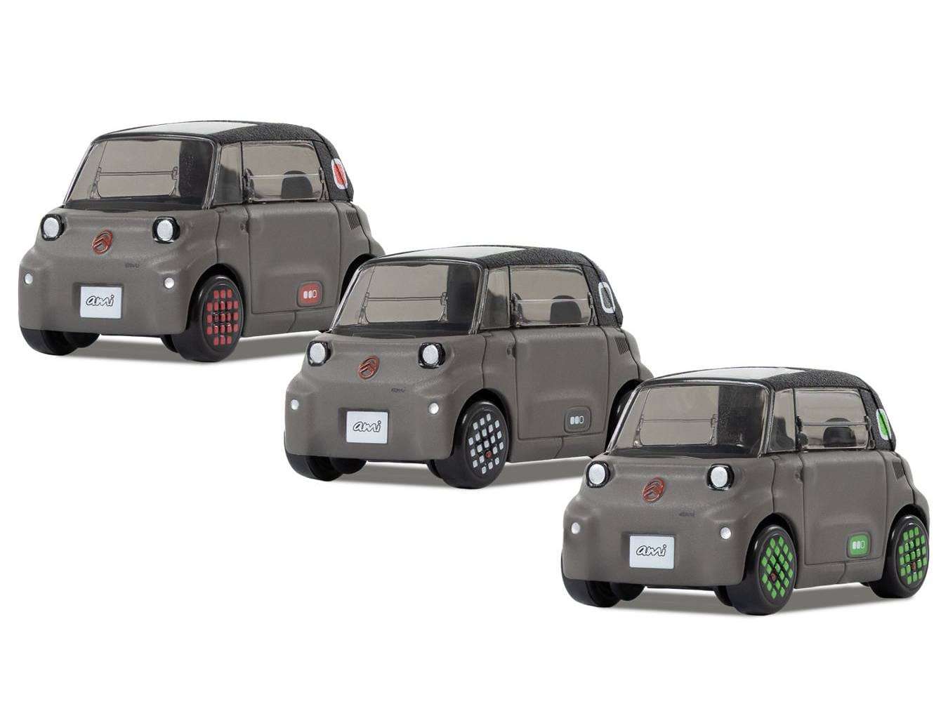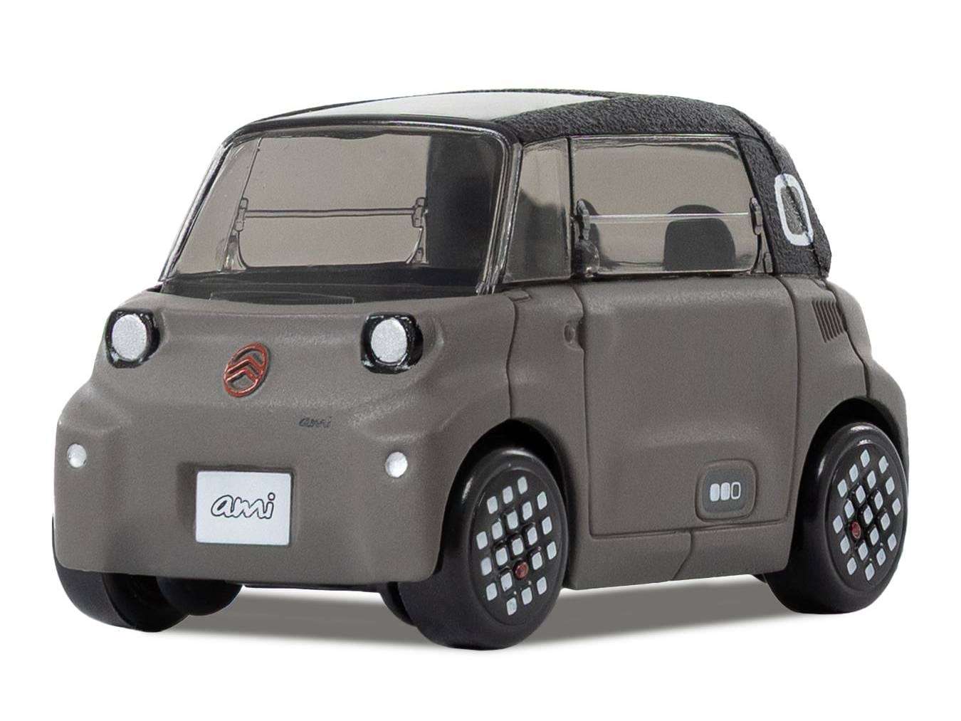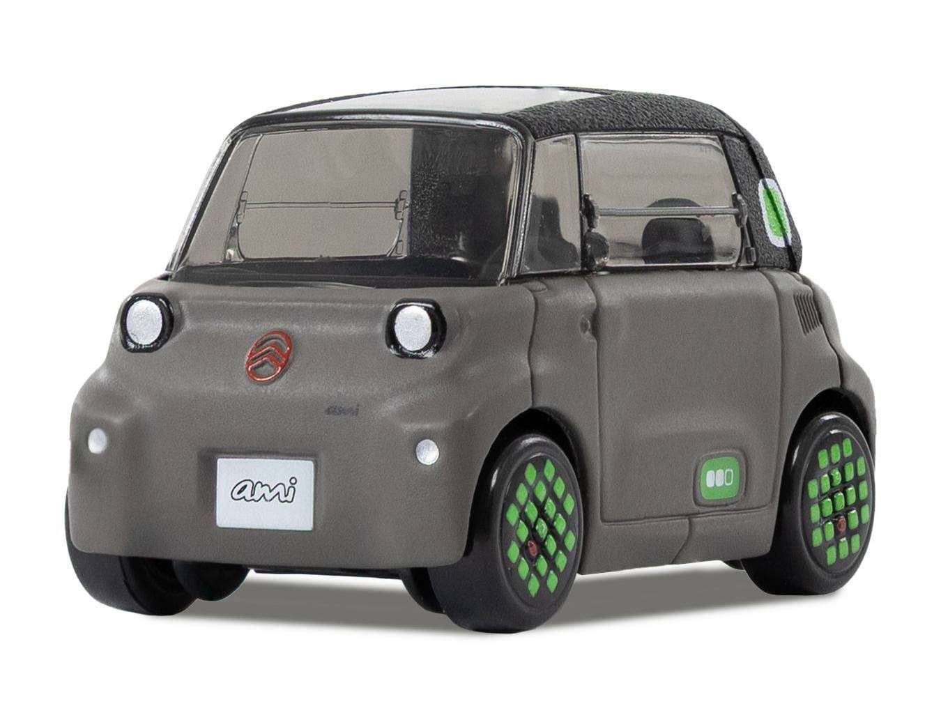 De bekende naam Citroën Ami hoort sinds 2020 ook bij een elektrische brommobiel. Dit jaar onderging deze moderne Ami een facelift, waarna hij nog meer op de 2CV zou moeten lijken. Tja. Norev was er in 2020 weer vroeg bij met een miniatuurversie, maar die verscheen alleen in 1:43. Nu is de faceliftversie er ook en juist alleen op kleine schaal. Deze Norev-modellen zijn de laatste jaren vrij nauwkeurig in 1:64, maar omdat de moderne Ami zo’n klein karretje is, kiezen ze nu toch voor een wat grotere schaal. De keuze viel op de wat ongebruikelijke schaal 1:52. Lastig voor wie alles in dezelfde schaal naast elkaar wil zetten, maar het voordeel is wel dat Norev meer details op het autootje kwijt kan. De basiskleur van de miniatuurversie is altijd donkergrijs, maar er is wel keuze uit witte, rode of groene accenten. De Ami is nu te bestellen in de officiële Citroën Lifestyle-webshop, maar zal uiteindelijk ook wel in Norevs eigen assortiment verschijnen. (NJ, foto’s: Citroën/Norev)