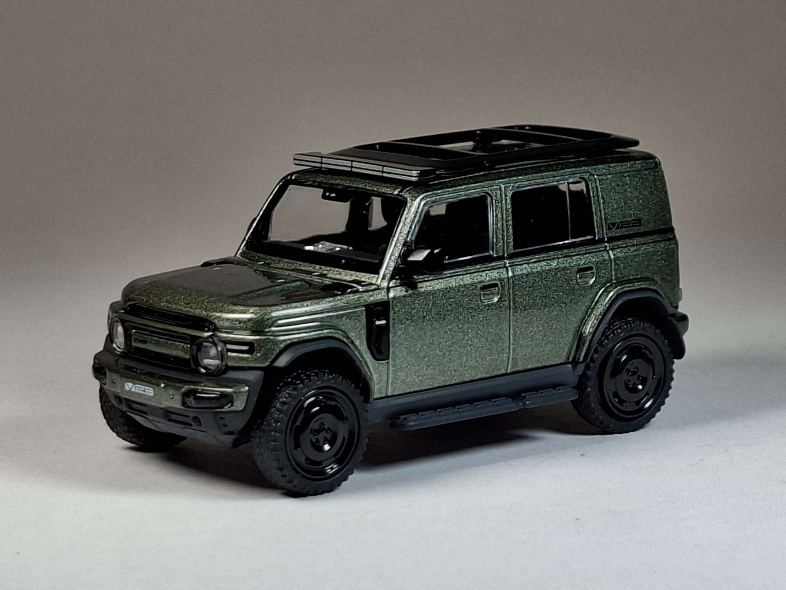De moderne Chinese auto’s van Xcartoys zijn divers, maar ze kiezen vaak wel modellen die zich nog enigszins onderscheiden van de massa. Deze iCar V23 bijvoorbeeld. Een auto die trouwens een stuk groter blijkt te zijn dan ik op basis van foto’s had verwacht. Zie de foto’s waarop hij naast de Passat staat: hij is bijna net zo groot als de moderne Land Rover Defender.