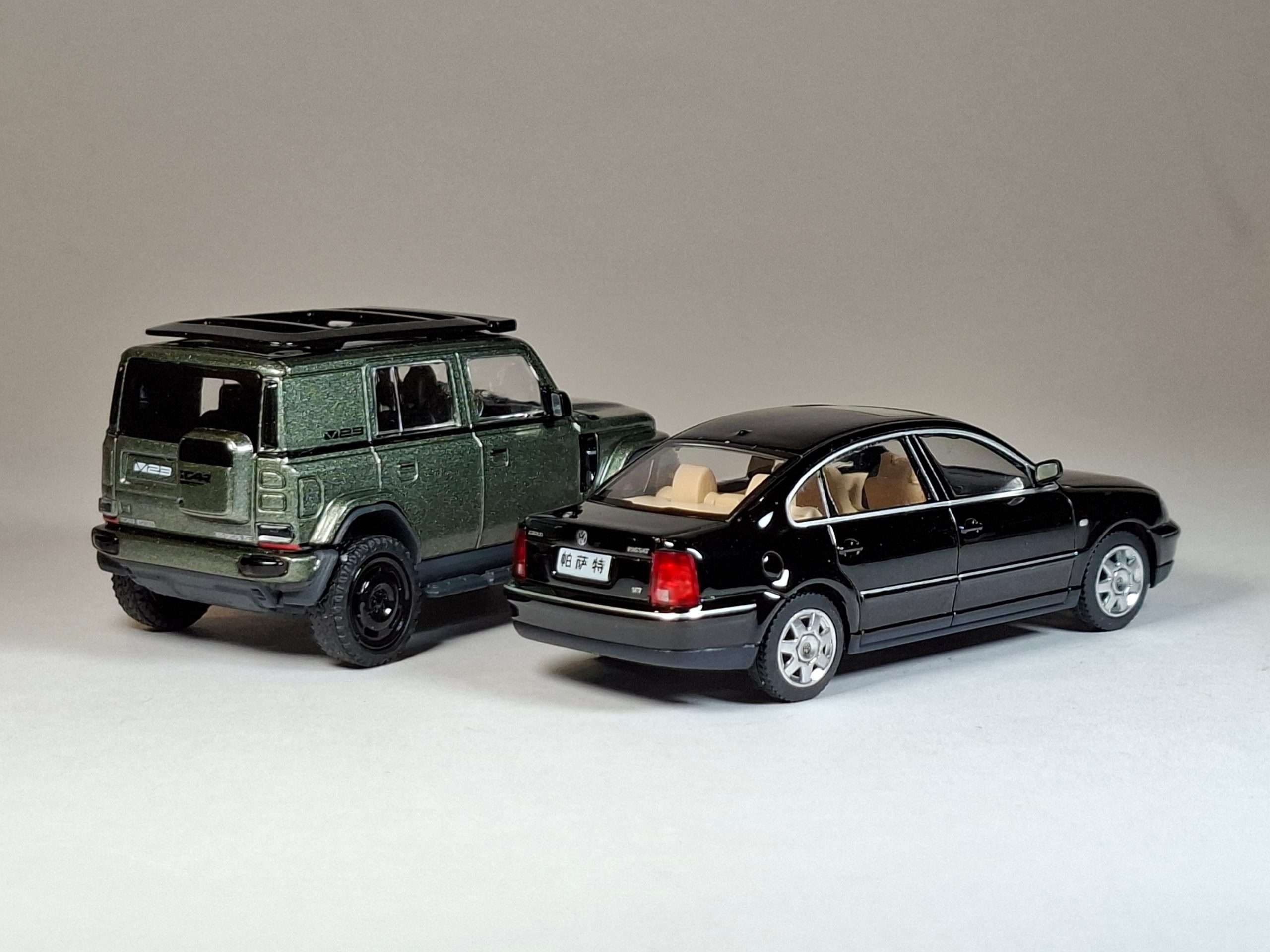Ter kennismaking laat ik hier twee modellen zien die Xcartoys recent heeft uitgebracht. Het merk richt zich vooral op (redelijk) alledaagse Chinese auto’s. Van actuele modellen tot youngtimers en zelfs een paar klassiekers. Tussen de youngtimers zitten ook modellen die voor Europa relevant zijn. Deze Volkswagen Passat bijvoorbeeld. Overigens zien we hier wel de verlengde versie voor de Chinese markt, vandaar dat de achterste helft van de auto net even anders oogt dan we gewend zijn.