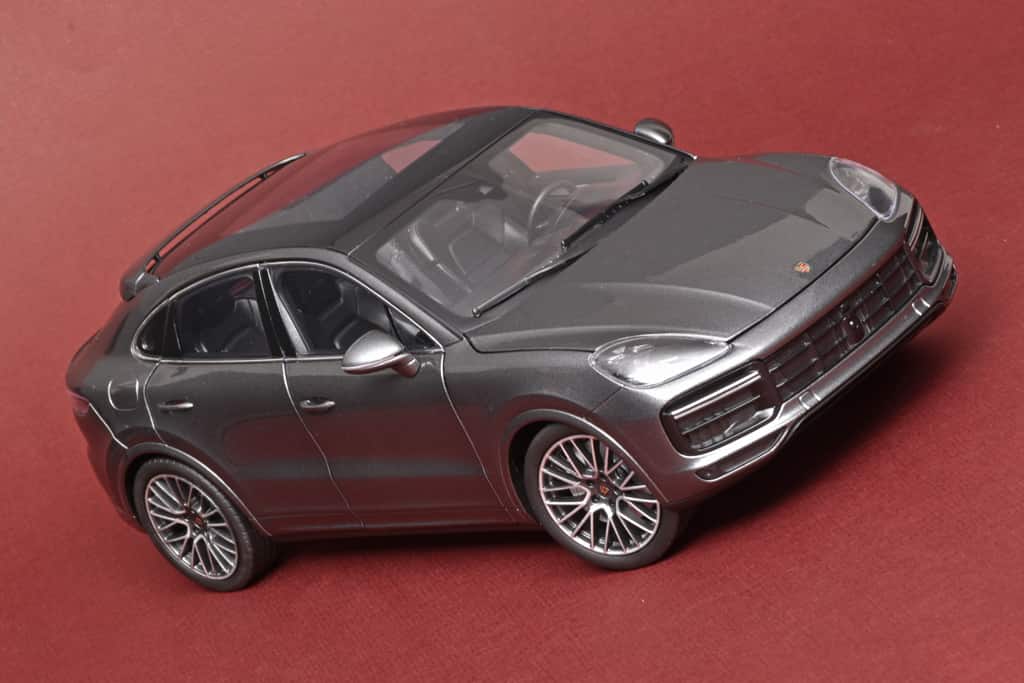 Mercedes was met de CLS de wegbereider voor de vierdeurs coupé. Andere merken volgden. Vervolgens kwamen er ook SUV’s met verlaagd dak. De een mooier (of lelijker) dan de ander. Zo maakt Porsche een coupé op basis van de Cayenne. Het 1:18 model van de Porsche Cayenne Turbo Coupé uit 2019 maakt Norev. En detaillering? Alles kan open, zodat er heel veel bewonderd kan worden. (BSp)