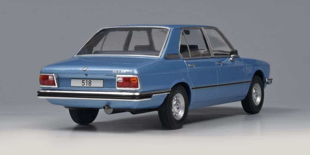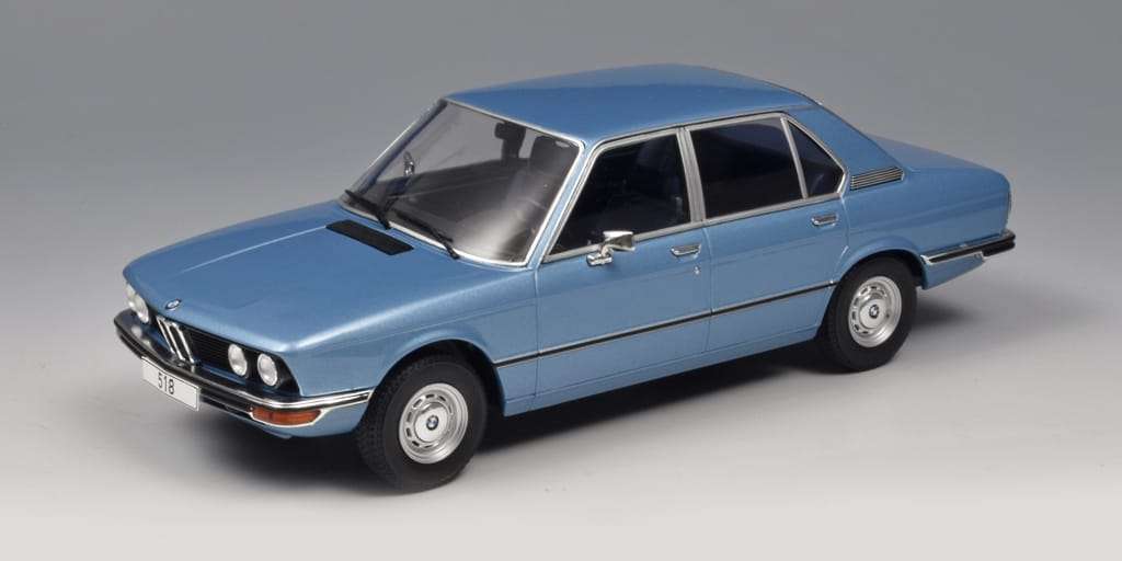 Eind 1972 introduceerde BMW een nieuwe sedan, die intern E12 genoemd werd. De nieuwe sedan behoorde tot de nu alom bekende 5-serie. De auto was met verschillende motoren verkrijgbaar en aan de achterzijde van de auto kon je zien met welke je precies te maken had. Het afgebeelde 1:18 model is de 518, die aangedreven werd door een 1,8 liter grote viercilinder. MCG maakt dit prima model van deze BMW 518. (BSp)