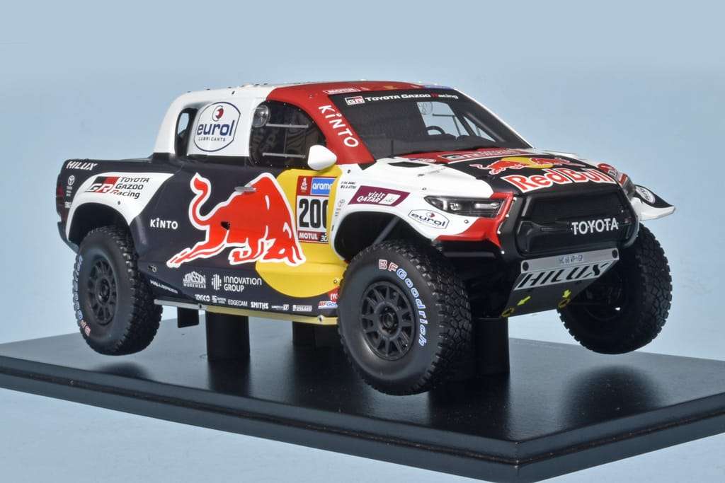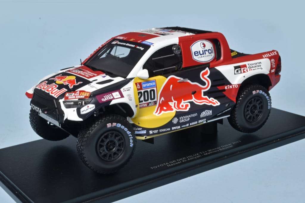 Coureur Nasser A-Attiyah en zijn copiloot Mathieu Baumel hebben in 2023 de zware Dakar-Rally overtuigend gewonnen. Hun gereedschap: de Toyota GR DKR Hilux T1+. Ze namen tijdens de derde etappe de leiding en stonden die niet meer af. Spark heeft dit goede en prima bedrukte 1:18 model van de Dakar-Rally winnaar gemaakt. (BSp)