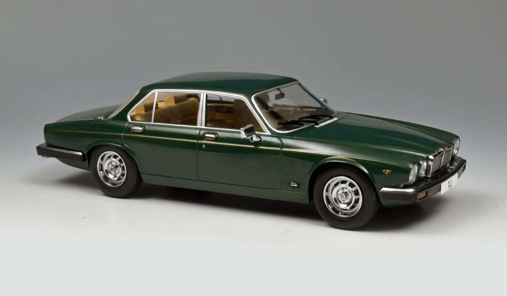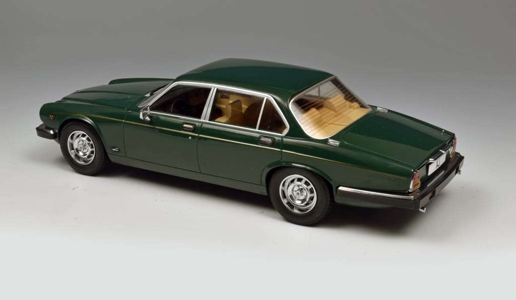 Het zit er allemaal in en op, een luxueus interieur met leren bekleding, houten dashboard en dergelijke, zoals alleen Engelsen dat kunnen. Daarbij een o zo Engelse styling. De saloon wordt aangedreven door naar keuze een soepele en krachtige 3,4 of 4,2 liter zes-in-lijn. MCG maakt het goede 1:18 model van deze Jaguar. Het is de in 1979 voorgestelde Series III die duidelijk herkenbaar is aan de koeler met uitsluitend verticale lamellen, andere bumpers en achterlichtunits waarin de achteruitrijlampen zijn opgenomen. (BSp)