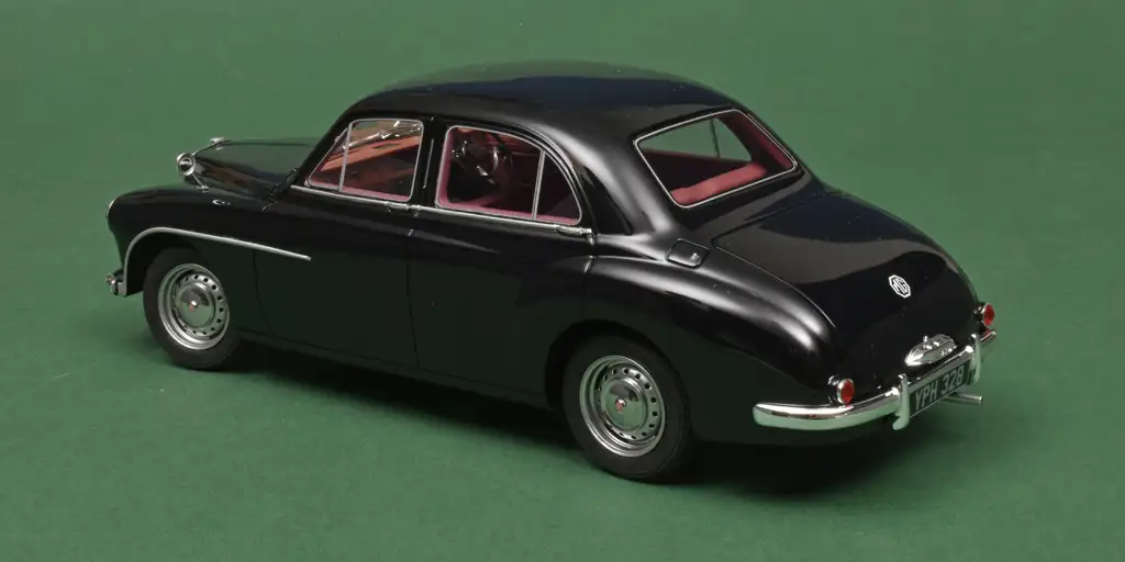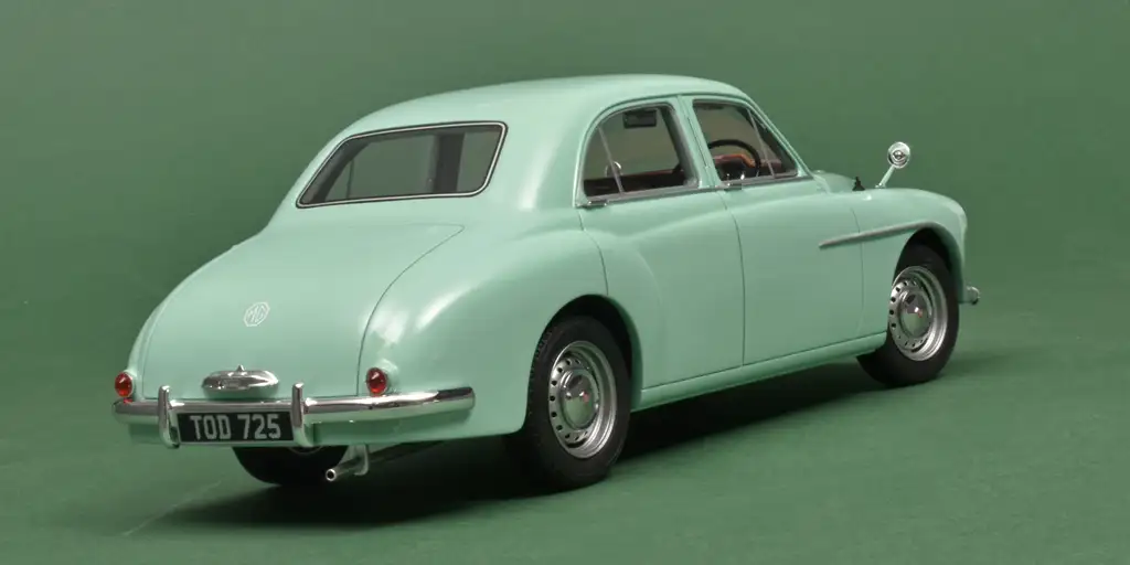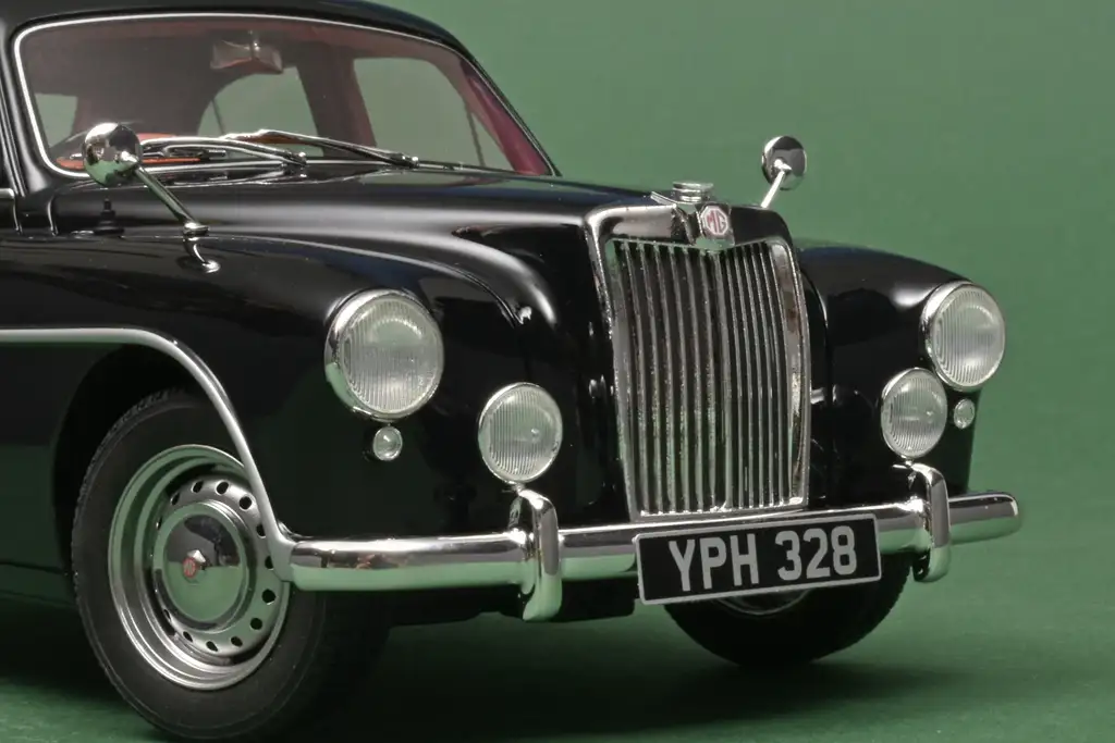 De vierdeurs MG Magnette ZB, waarvan er iets meer dan 18.000 verkocht zijn, was de opvolger van de in 1953 gepresenteerde ZA. De 4,27 m lange en 1,6 m brede sedan rekende men toentertijd tot de ‘large family cars’ en werd aangedreven door een 64 pk sterke 1,5 liter viercilinder. De auto is een doorontwikkeling van z’n voorganger de ZA en lijkt er als twee druppels water op. En zoals een Engelse auto betaamd vind je in de Magnette veel leer en gepolitoerd hout. Cult Scale Models maakt dit fraaie 1:18 resin model dat verkrijgbaar is in drie verschillende carrosseriekleuren. Zoals altijd zijn de voorwielen bestuurbaar. (BSp)