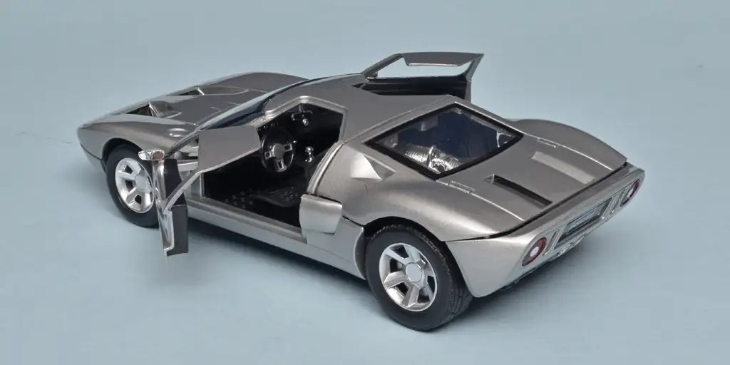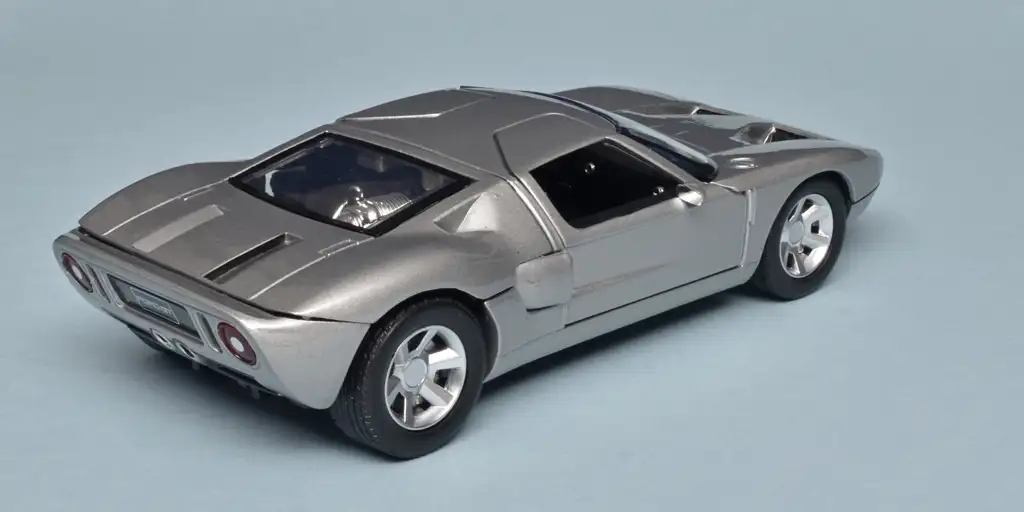 Denk je aan de Ford GT dan denk je allereest aan de Ford GT40 die Ferrari op Le Mans versloeg. Jaren later was Ford zo dom om de rechten op GT40 te verkopen en toen de iets grotere GT40 lookalike aan begin van deze eeuw werd voorgesteld heette de nieuweling heel onlogisch Ford GT. Van die auto heeft MotorMax dit ietwat grove 1:24 model gemaakt waarvan de portieren jammer genoeg niet ver genoeg open kunnen. (BSp)