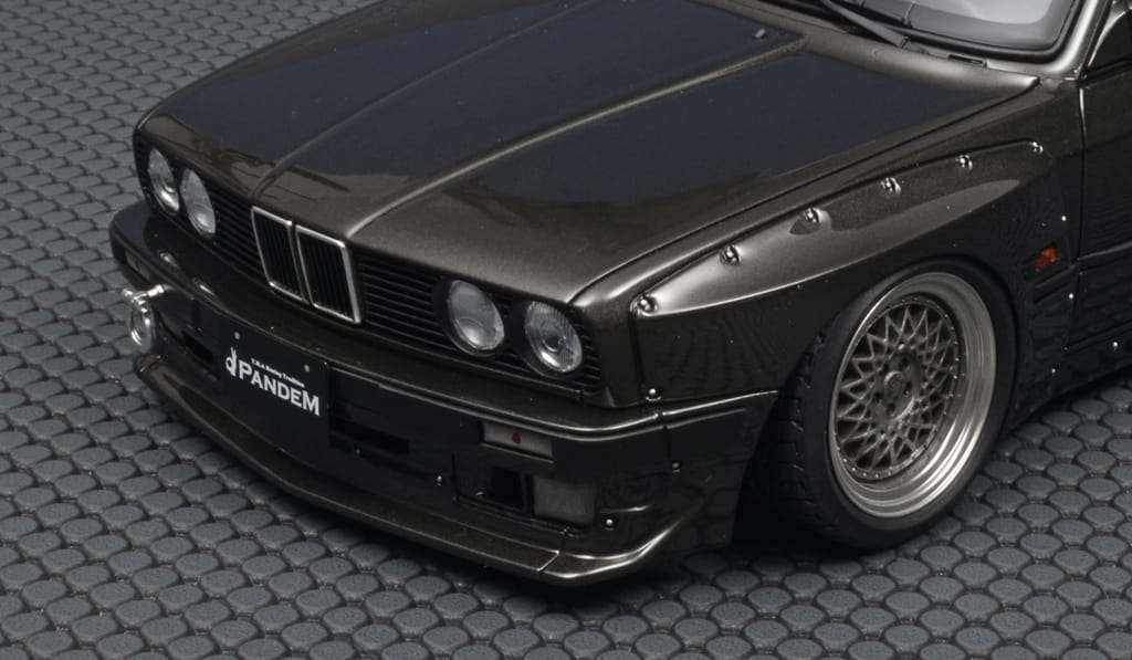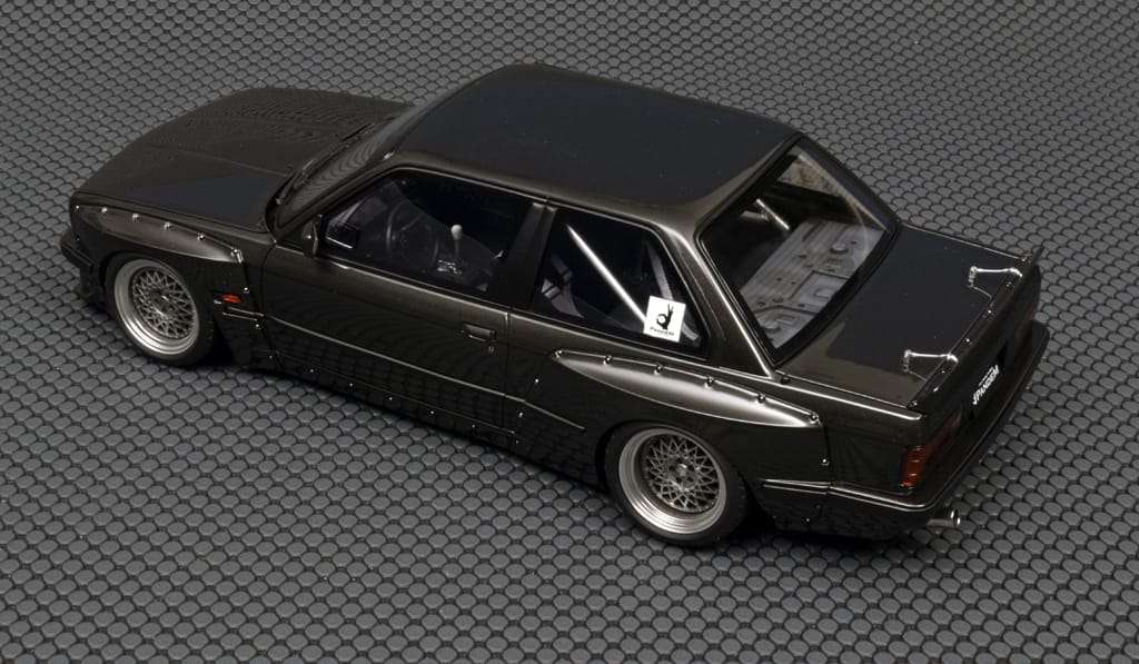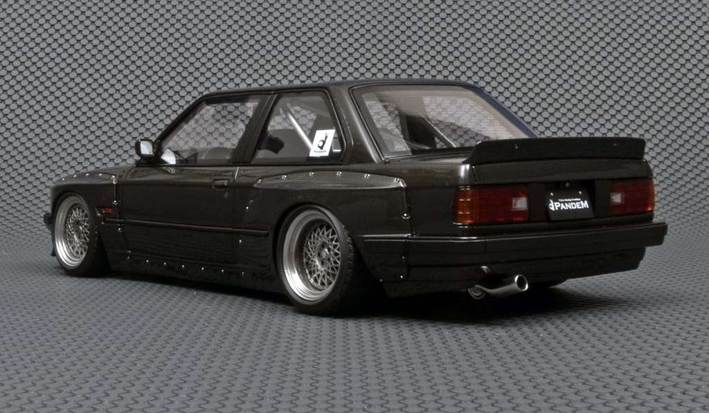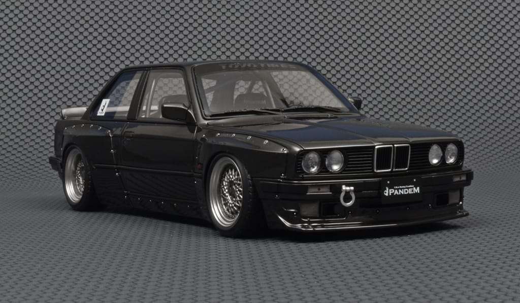 Ignition Model maakte tot voor kort prachtige modellen van Japanse auto’s. Intussen hebben ze hun horizon verbreed, want het afgebeelde model is een door Pandem zowel optisch als onderhuids aangepaste BMW 3 Serie (E30). Met zijn brede schermen is het bijna een M3. En dankzij de rolkooi zou je er bijvoorbeeld mee aan de in Japan zo geliefde driftwedstrijden deel kunnen nemen. Het is een prachtig 1:18 resin model. De afwerking en detaillering is bovengemiddeld met een bijbehorend prijskaartje. Gezien bij Tom’s Modelauto’s. (BSp)