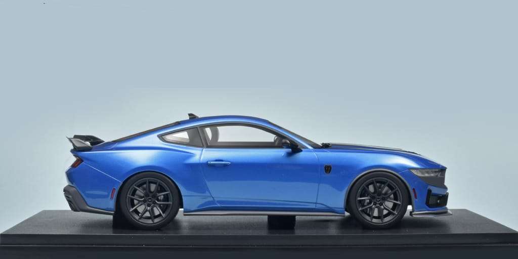 Niet alleen Porsche, maar ook Ford koestert z’n iconisch modellen. In dit geval is het de welbekende en sinds 1964½ in productie zijnde Mustang. Top Speed heeft de bloedsnelle Ford Mustang Dark Horse uit 2024, een speciale uitvoering die in Nederland ook leverbaar is, achttien keer verkleind. (BSp)