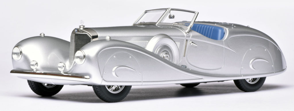 Op Grote Schaal·14 februari 2019Mercedes-Benz 500k Onder de extravagante lijnen van de Erdmann & Rossi-carrosserie gaat een klassieke Mercedes-Benz 500K schuil, die CMF achttien keer heeft verkleind.