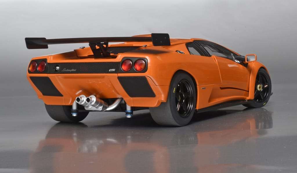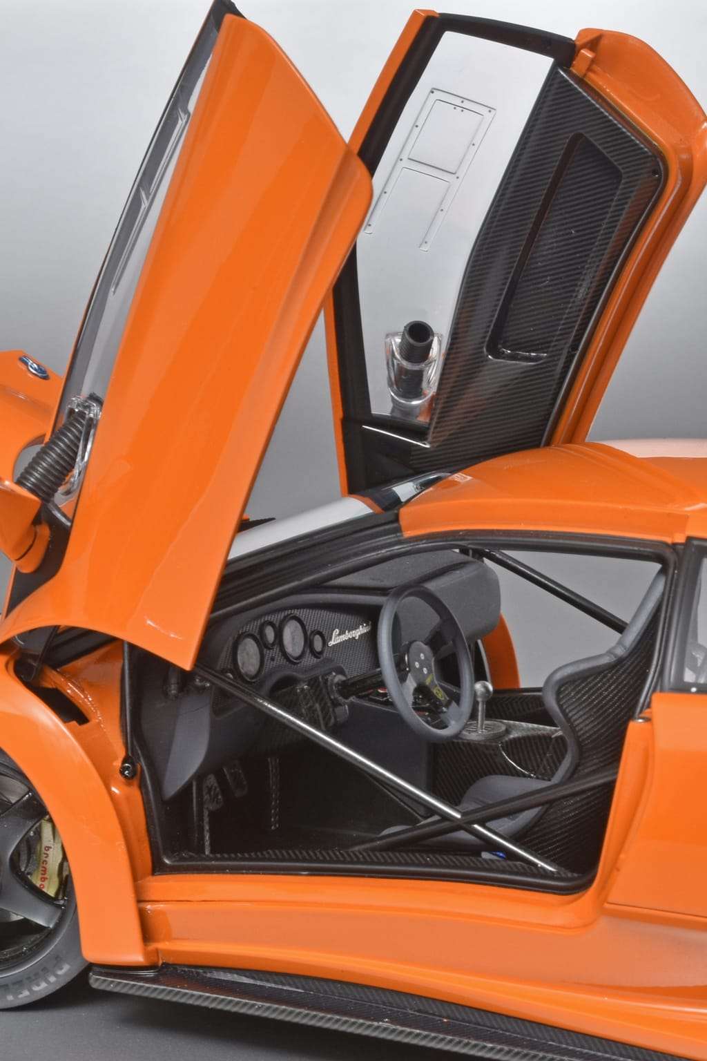 De vanaf 1990 geproduceerde Lamborghini Diablo behoorde tot het topsegment van de sportwagens. Maar Lamborghini heeft de Diablo tijdens de productiejaren steeds doorontwikkeld en verbeterd. Er zijn zelfs wedstrijdauto’s gebouwd zoals de in 1999 voorgestelde Diablo GTR, waarvan in eerste instantie een straatlegale uitvoering wed gebouwd. Maar voor circuitgebruik werd de al lichtere GTR nog verder aangepast. Uiteraard is toen ook de techniek stevig onderhanden genomen. De natuurlijk beademde 6,0 liter V12 leverde in race-trim 590 pk. Het prachtige en gedetailleerde model maakt AutoArt. (BSp)
