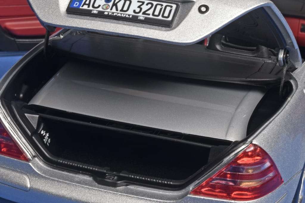 Sport, Leicht, Kurz. Dat is afgekort SLK, oftewel de naam van de in 1996 door Mercedes-Benz geïntroduceerde en door Bruno Sacco ontworpen SLK. Mercedes bestempelde de roadster als de wedergeboorte van de 190SL uit de jaren vijftig. Onder de motorkap van beide auto’s huist namelijk een vier-in-lijn. Ook zijn/waren beide roadsters de goedkoopst leverbare. Daarmee houdt de vergelijking echter wel op. De moderne SLK is gedrongener en heeft een voor de jaren negentig modern inklapbaar hardtopdak. Zo’n inklapbaar dak heeft het 1:18 Norev-model niet. Je ‘m kunt afnemen. Verder kan alles geopend worden en zijn de voorwielen bestuurbaar. Kort en goed: een prima model. (BSp)