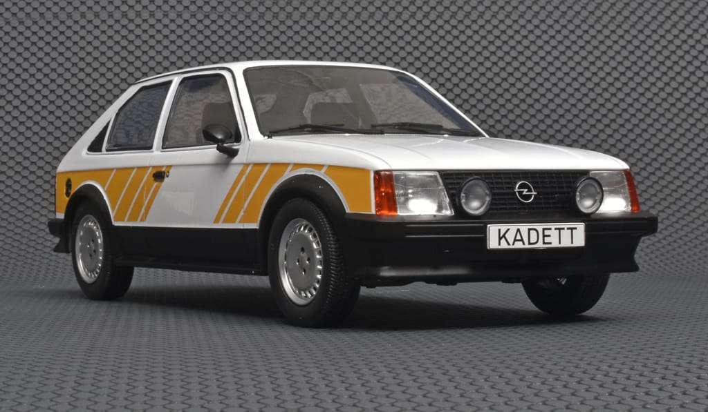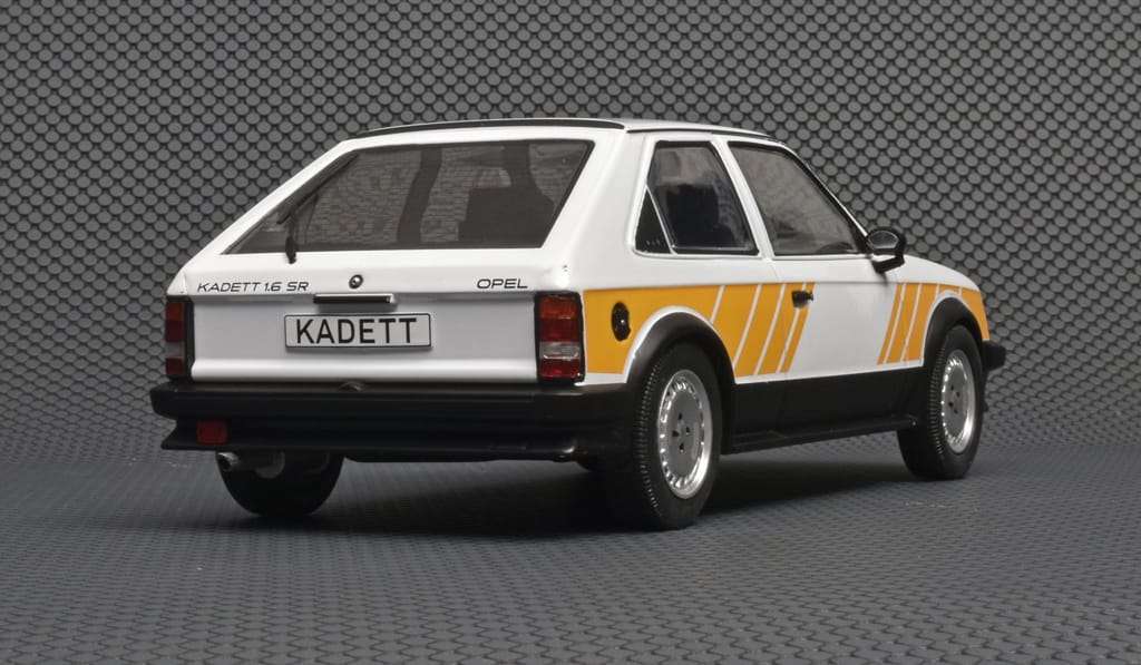 De vierde generatie van de Opel Kadett, ook wel Kadett D genoemd, werd in 1979 voorgesteld. In tegenstelling tot z’n voorganger had de strak gelijnde nieuweling voorwielaandrijving en een dwars voorin geplaatste motor. Zoals altijd was de Kadett in diverse carrosserie- en uitvoeringsvarianten leverbaar. Opvallend detail, de basisversies hadden ronde koplampen, de luxere vierkante. MCG maakt dit goed vormgegeven 1:18 model van de sportieve Kadett SR. (BSp)