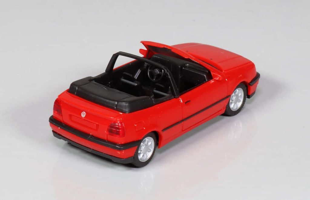 In de tijd dat praktisch elke Duitse auto in schaal 1:87 werd omgezet, kwam Herpa met de Volkswagen Golf III. Het waren de hoogtijdagen van 1:87, dus die Golf kwam in 5-deurs gezinsuitvoering, als 2-deurs VR6, als Variant (stationcar) en deze cabriolet. Hoewel dat model inmiddels ook al bijna 25 jaar meeloopt, is er helemaal niets op aan te merken. Terecht dus dat Herpa het model opnieuw als kleurvariant op de markt brengt. (BV, foto’s BSg)