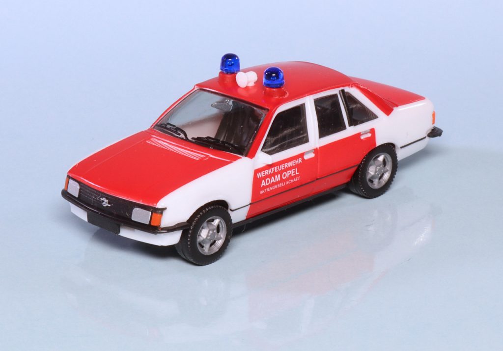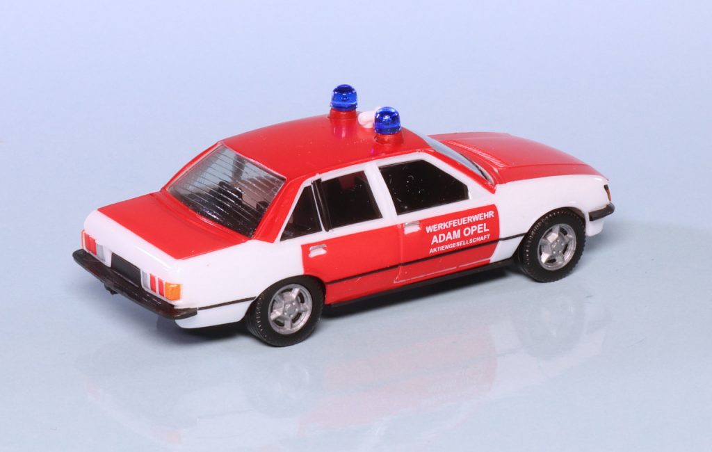 Dat de brandweerchef van Opel niet in een Mercedes kan rijden lijkt me logisch. Herpa komt met een 1:87 Opel Rekord E van die brandweerchef. Opschrift: Werkfeuerwehr Adam Opel Aktiengesellschaft. (BSg)