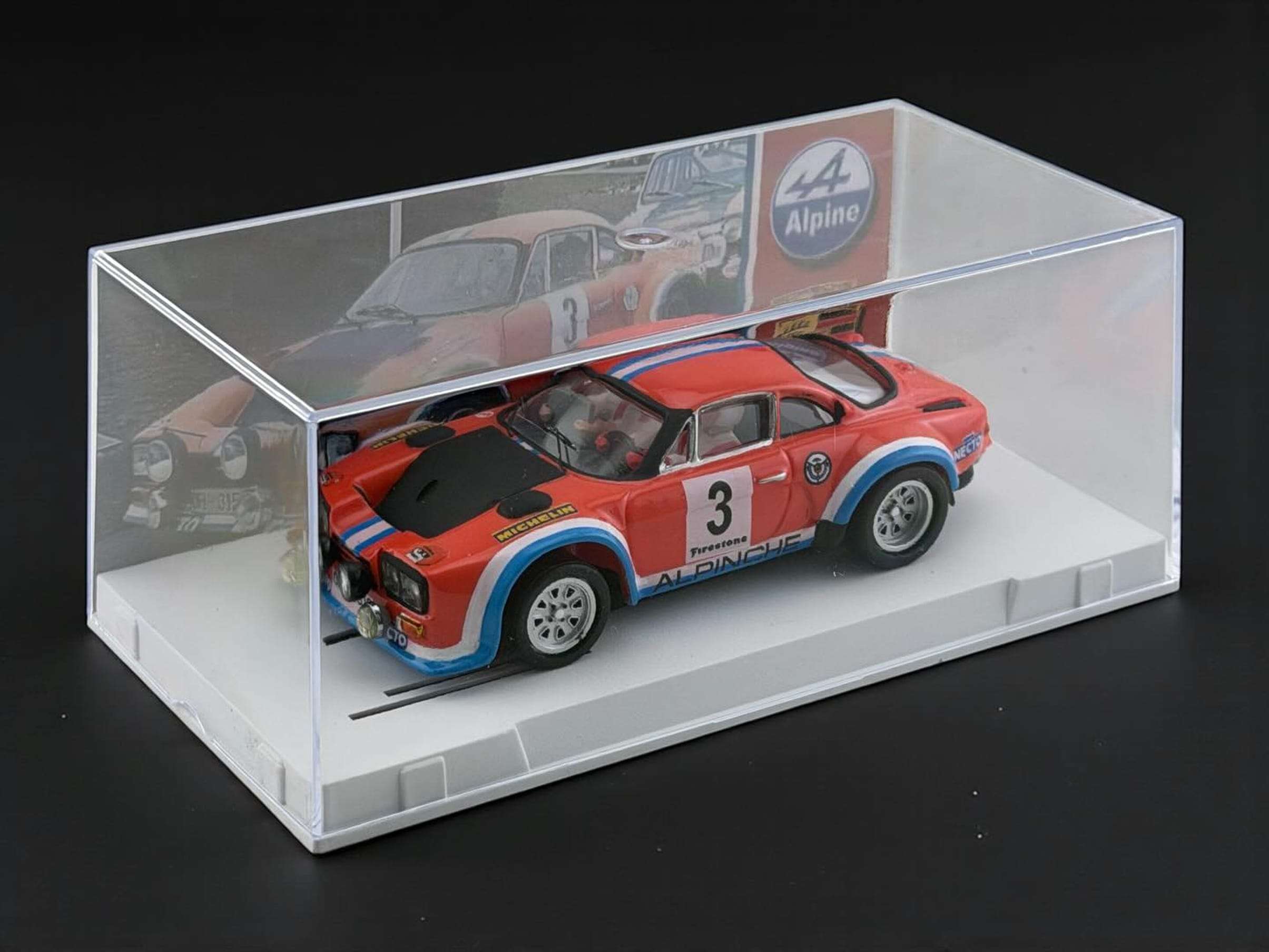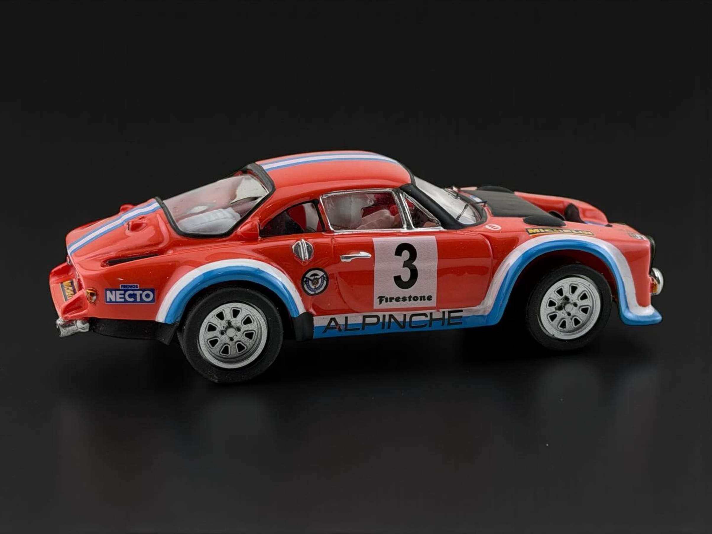 Het Spaanse Hobbyclassic Slot Cars Lab heeft vaak zeer opmerkelijke modellen en brengt nu een zeer bijzondere opvallende – vrijwel onbekende – Alpine A110 op de slotcartrack. Deze Alpine heeft naast een iets wat aangepaste body ook een aangepaste naam “Alpinche”. De auto streed onder andere in 1975 met de coureur Reverter achter het stuurtje in de Rally van Asturia. Het bedrijfje wat dit model construeert is Resin Whim’s en zet het model via Hobbyclassic Slot Cars Lab op de markt. Het model is gedetailleerd, kleurrijk en vervaardigd uit resin. Het brengt de essentie en sensatie van rallyrijden uit de jaren zeventig over: karakter, risicovol en vooral spektakel. De Spaanse motorsportgeschiedenis is klaar voor je vitrine of om het gaspedaal vol in te trappen op de slotcarbaan. (BSij)