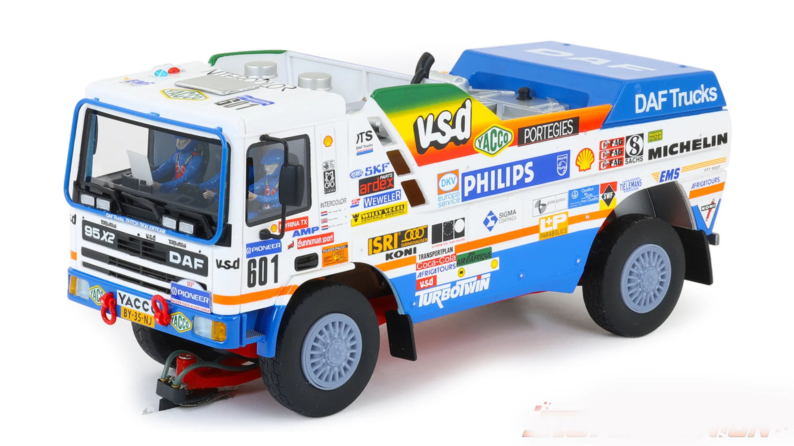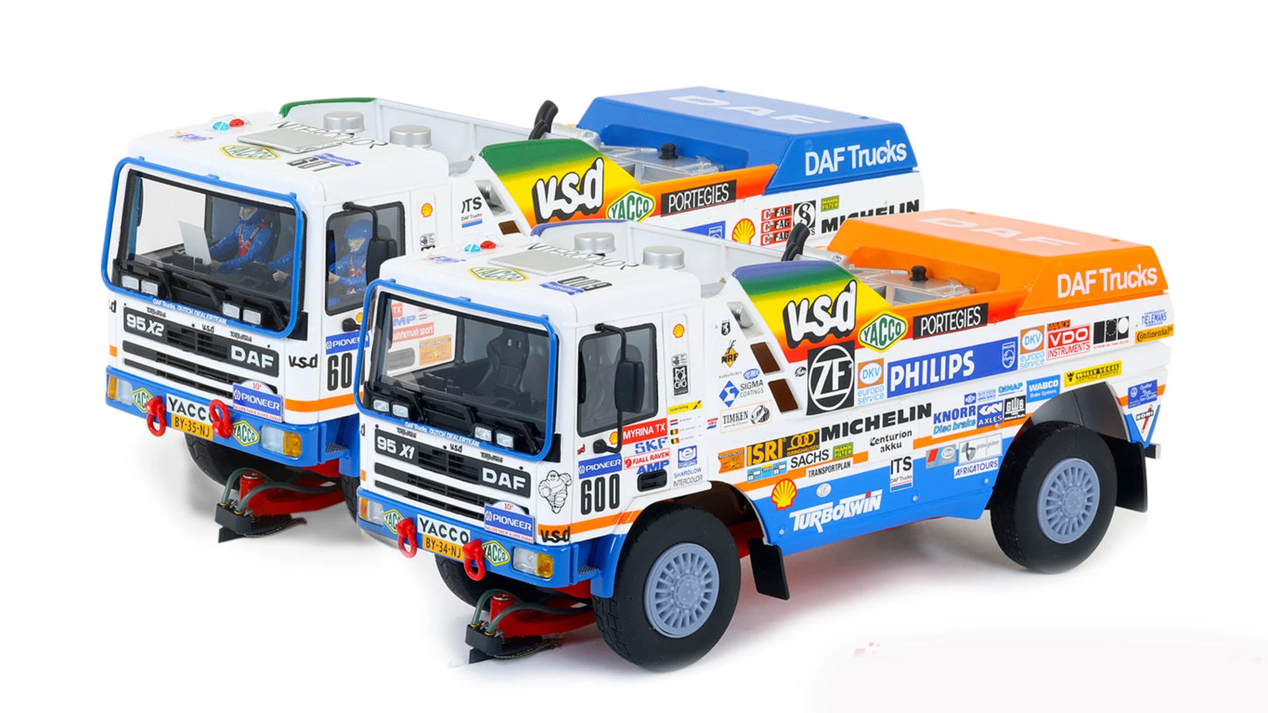 Het Spaanse Avant Slot kon het niet laten en komt met twee sterren uit de echte Paris-Dakar Rally 1988. Het zijn de beroemde en legendarische TurboTwin machines van DAF. De DAF TurboTwin 95 X1 met #600 van Jan de Rooy-Hugo Duisters-Yvo Geusens. En de DAF TurboTwin X2 #601 van Theo van de Rijt-Kees van Loevezijn-Chris Ross.