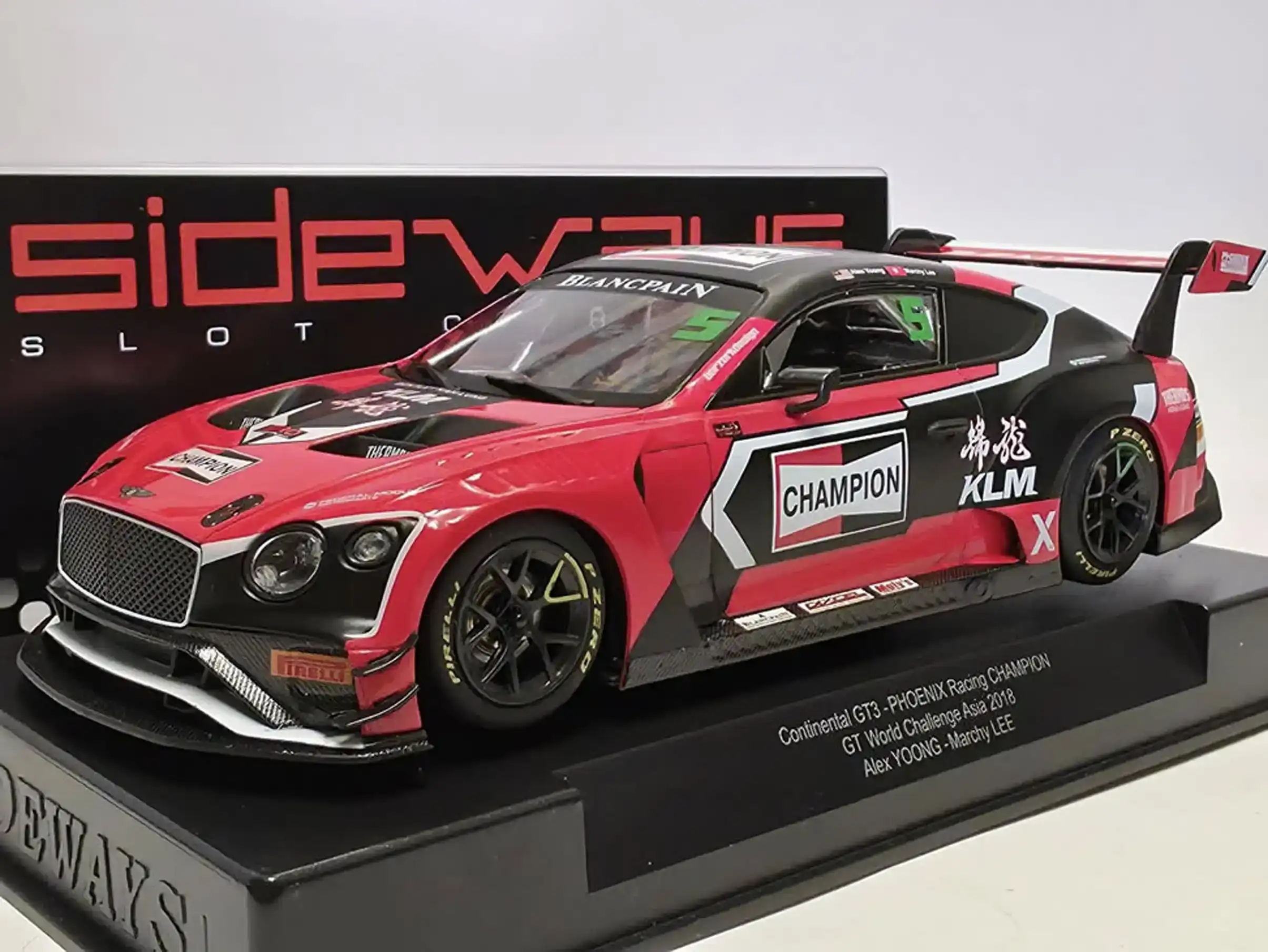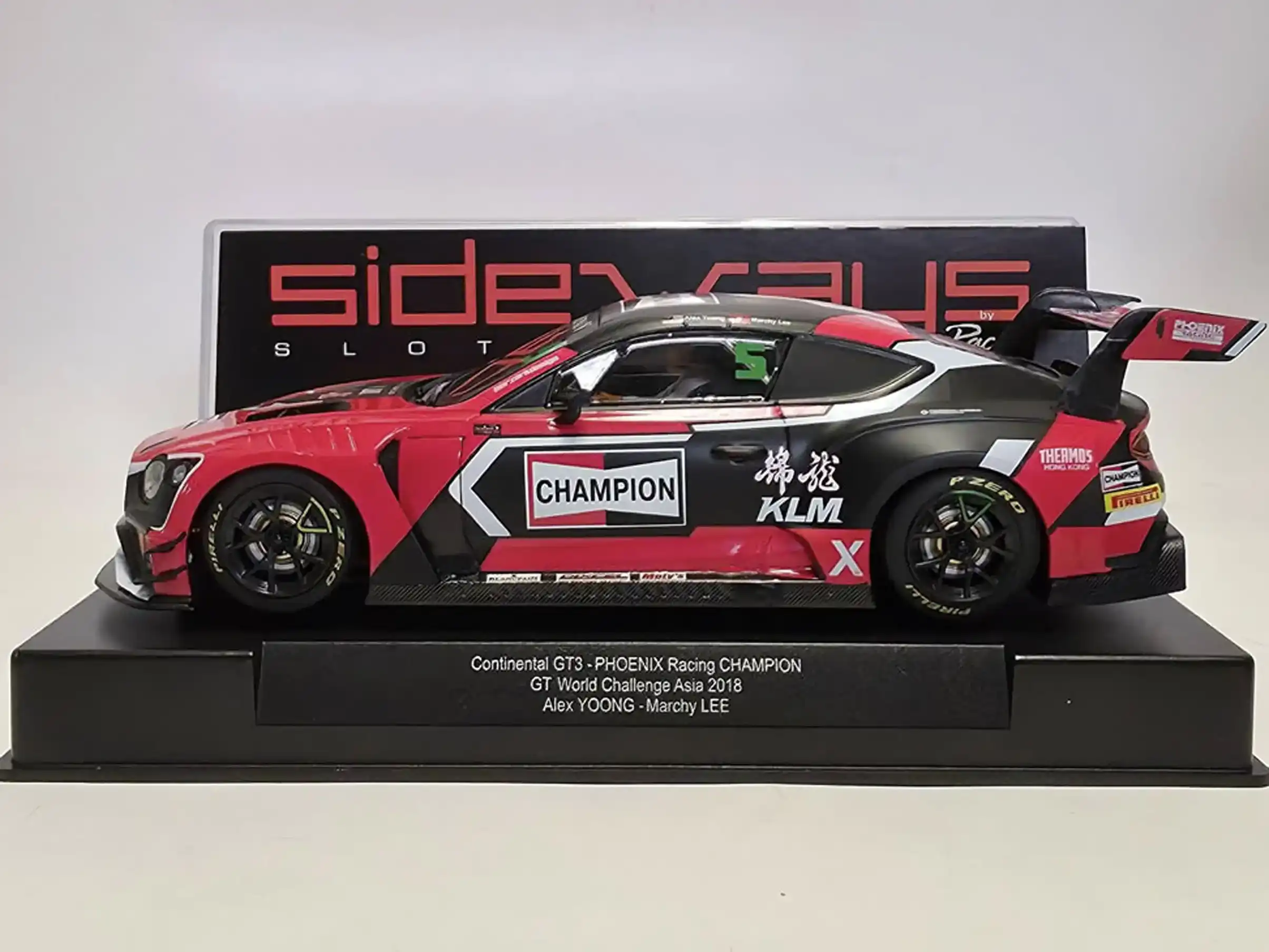 Het Franse slotcarmerk Sideways zet een zeer chique edoch razendsnel voertuig op de baan. Het is een Bentley Continental GT3 van het Team Phoenix Racing Asia en de kampioen in 2018, een model dat elegantie en overwinning combineert mede geïnspireerd door het grote uithoudingsvermogen en verfijnde prestige. De auto werd bestuurd door Alex Young en Marchy Lee in de Blancpain GT Series Azië 2018. Het model weerspiegelt perfect de geest van Sideways: een mix van authenticiteit, prestaties en passie. (BSij)