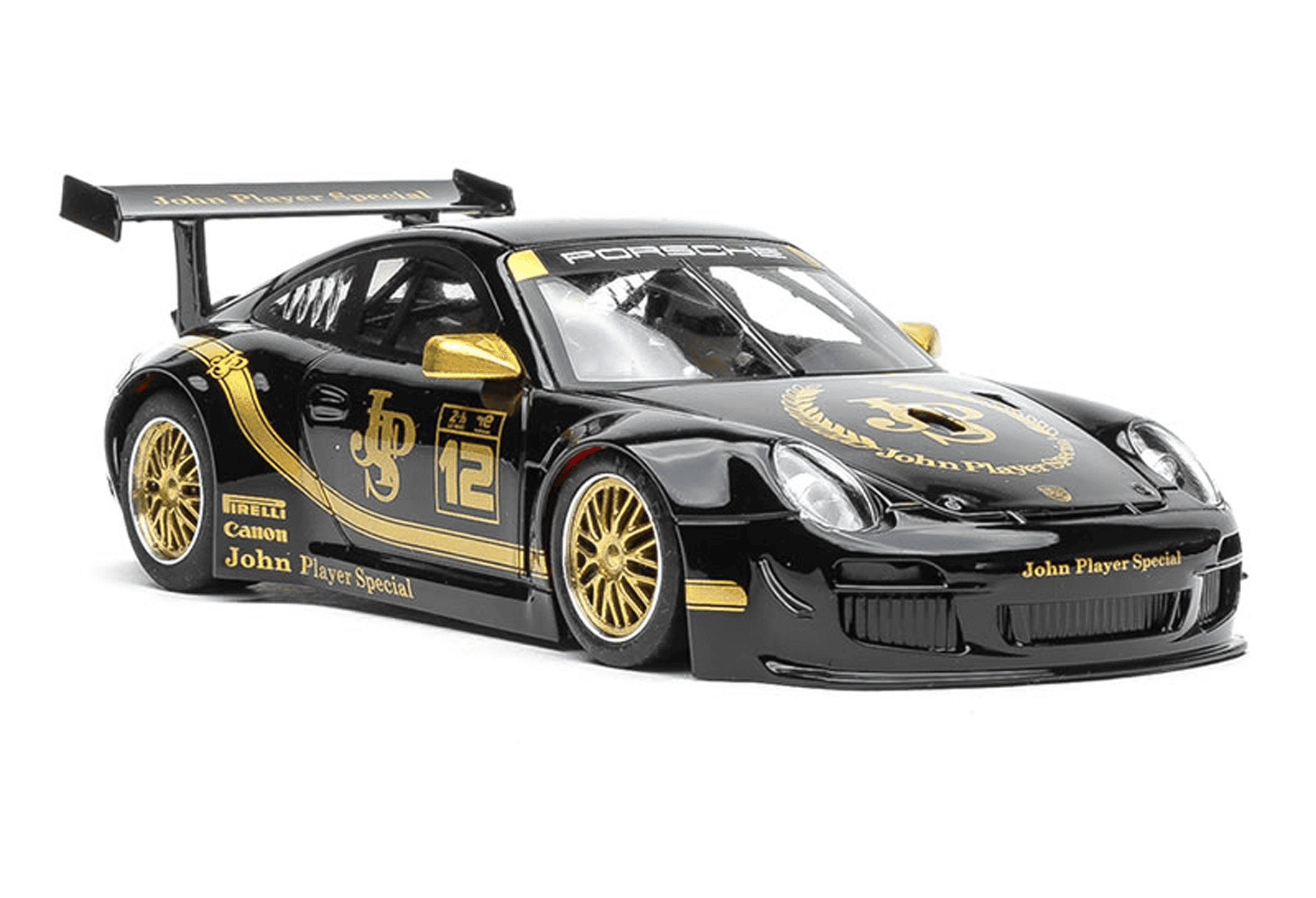 Begin december raakt het Italiaanse slotcarmerk NSR een nostalgische en gevoelige snaar met deze twee Porsche 997’s op schaal 1:32, gehuld in de mythische John Player Special-kleurstelling. Een knipoog naar het gouden tijdperk van de autosport, waarin elegantie, prestaties en prestige samenkwamen in een onnavolgbare stijl. Deze twee modellen, de Porsche 997 # 07en de Porsche 997 #12 laten perfect het vakmanschap van NSR zien. Getrouw aan zijn standaard levert het Italiaanse merk modellen die zowel subliem zijn voor de verzamelaar als indrukwekkend op het circuit voor de ervaren slotcarcoureur. Onder de zeer fijn gedetailleerde carrosserie bevindt zich de King 21-motor gemonteerd in de Anglewinder-positie, een iconische configuratie van NSR, die grip en balans tussen vermogen en precisie garandeert. Het stijve high-performance chassis zorgt voor een fantastische wegligging, genoeg om snelle ronden aan elkaar te rijgen terwijl je de controle behoudt. (BSij)