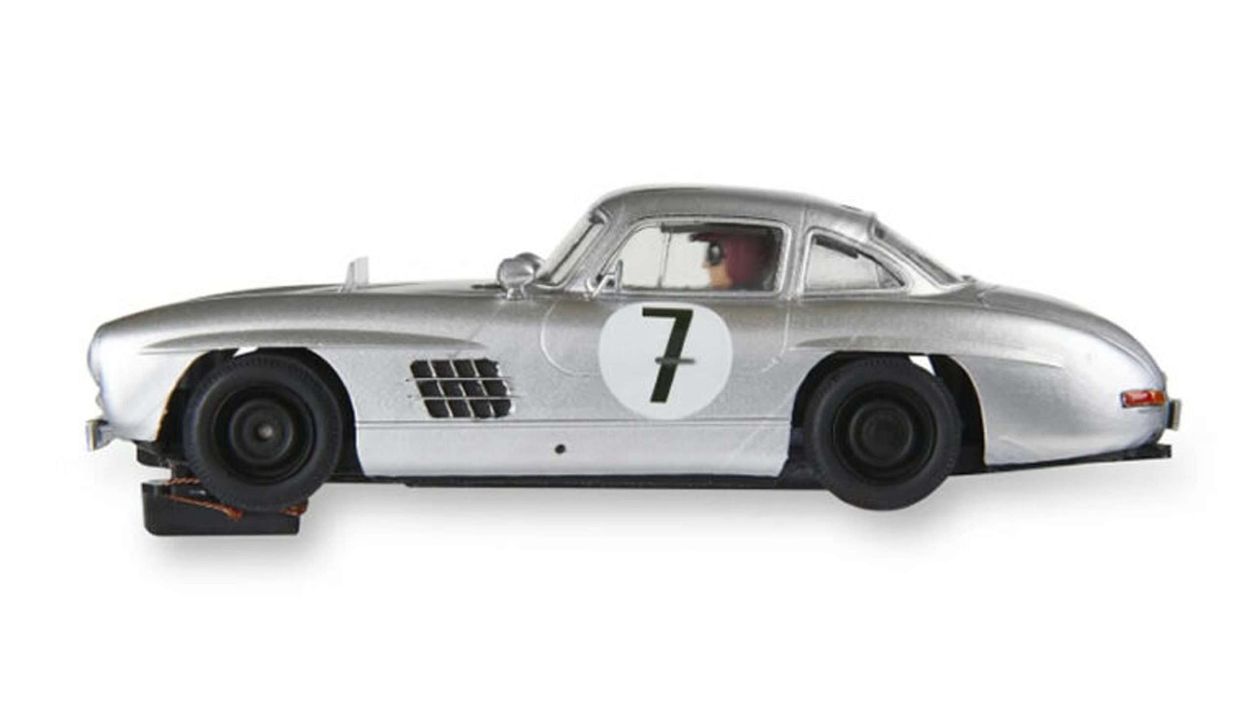 Het Spaanse SCX blikt terug naar het gouden tijdperk van de autosport met een model in een bijzondere gelimiteerde verzameldoos. Het model is de Mercedes-Benz 300 SL #7, bestuurd door Paul Metternich & Wittigo Von Einsiedel tijdens de 24 uur van Le Mans in 1956. Waarschijnlijk heeft geen enkele andere Mercedes zo’n roem bereikt als de 300 SL. Een waar icoon van de prille supercars, zijn unieke ontwerp en avant-garde technologie hebben geschiedenis geschreven sinds de introductie, met zijn beroemde vleugeldeuren en iconische silhouet.