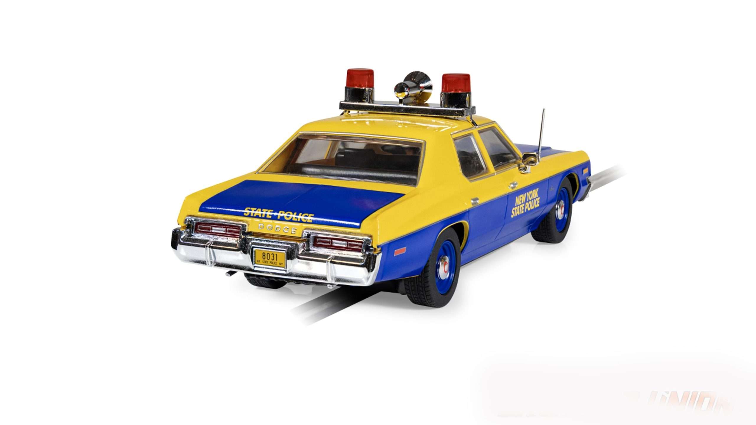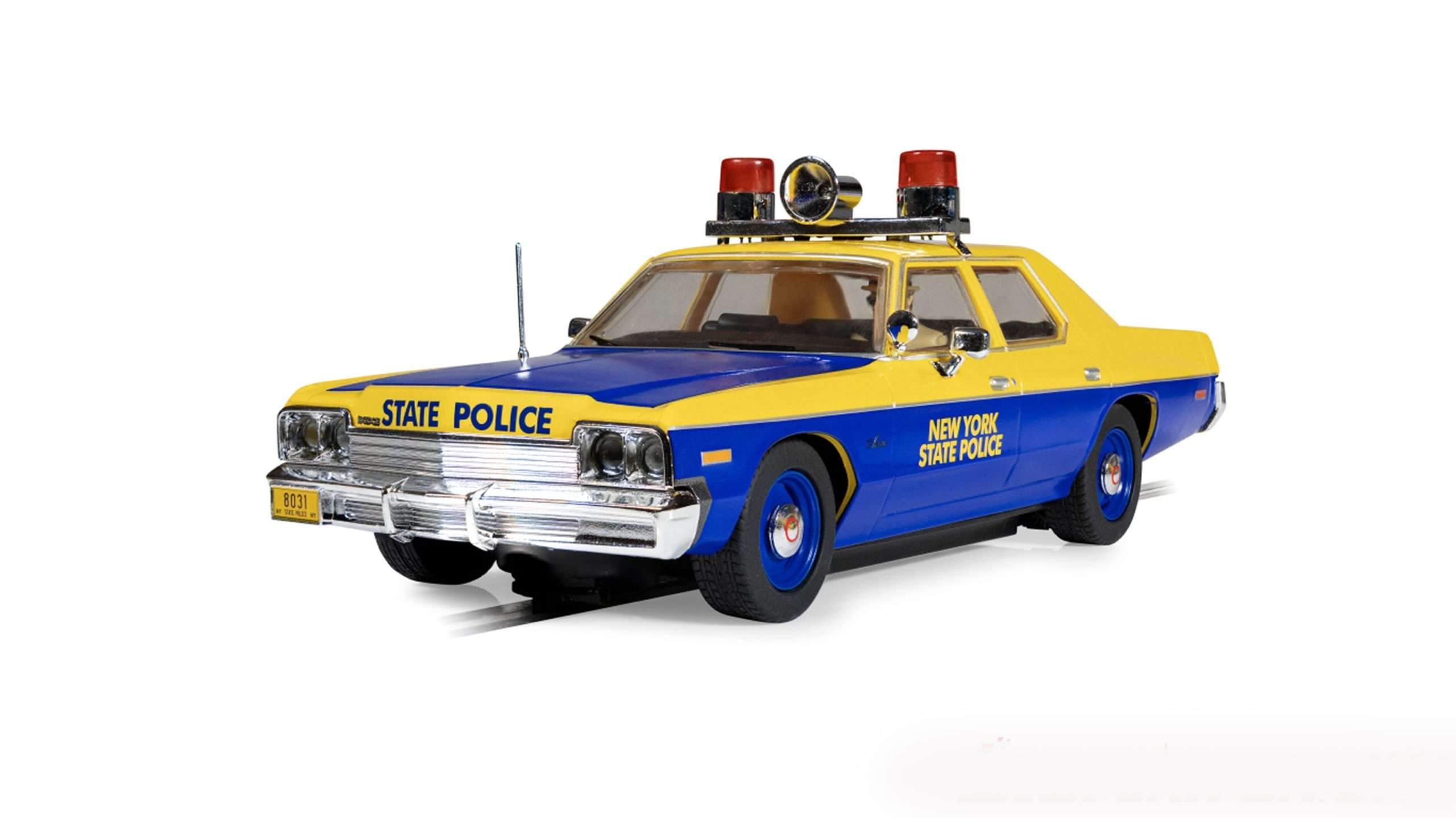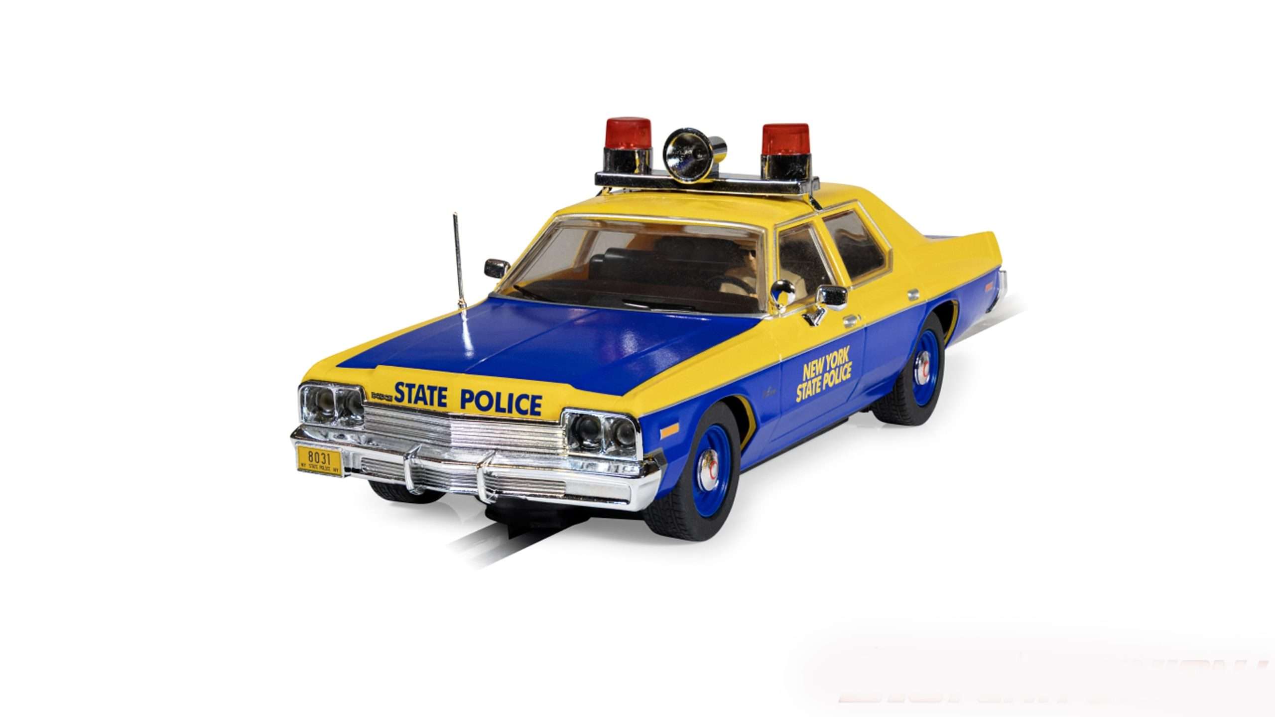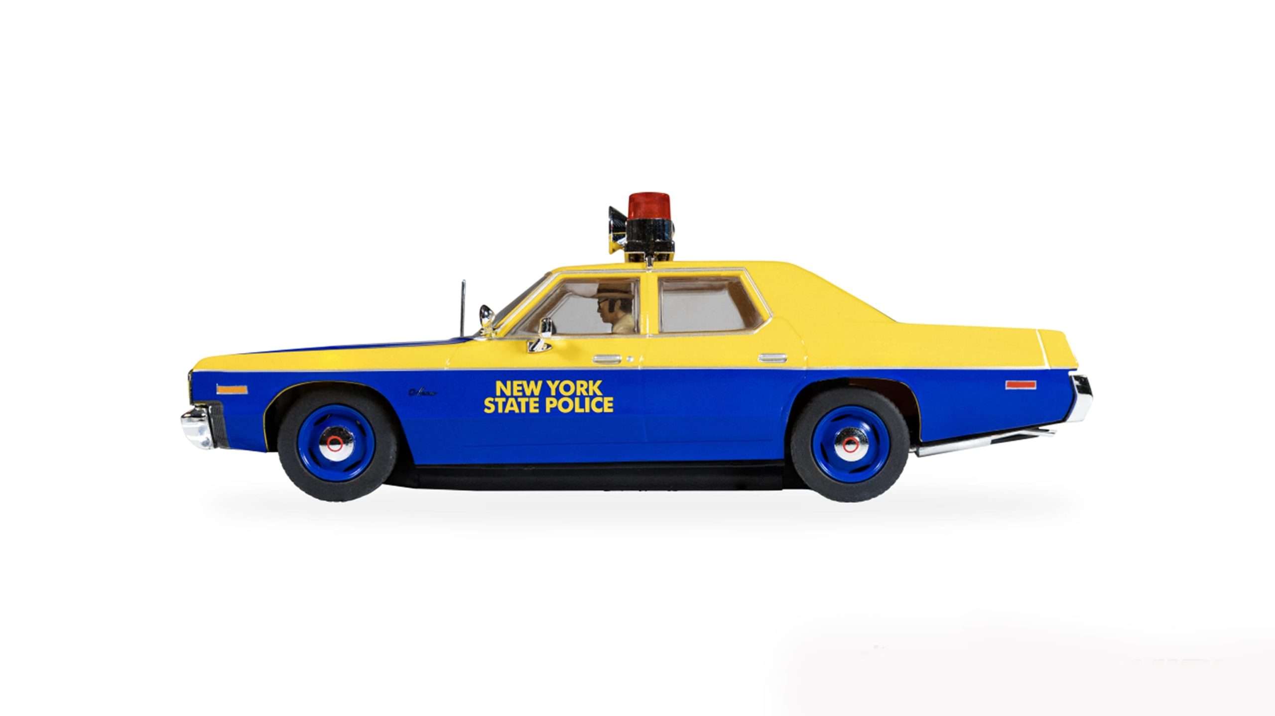 Scalextric brengt de Amerikaanse wethandhavingstraditie naar je eigen slotcarcircuit met de Dodge Monaco Police Edition in de onmiskenbare blauw-gele kleurstelling van de New York State Police. Deze full-size cruiser toont het aanzicht van de politie uit de jaren zeventig, toen V8-aangedreven Monaco’s de snelwegen met autoriteit en onmiskenbare stijl domineerden. Van de vierkante chromen bumpers tot de daklichtbalk, elk detail toont het gouden tijdperk van de Amerikaanse politieauto. Op het eigen thuiscircuit of op een ereplaats in de vitrine, deze NYSP Monaco biedt het authentieke patrouillewagenkarakter dat de liefhebber zal aanspreken. Scalextric rust dit grote model uit in de authentieke kleuren bauw en geel met werkend verlichting voor en achter, veel verfijnde details en aandacht voor het werkend zwaailicht op het dak. Het enige gemis is het geluid van de sirene dat je er helaas zelf bij moet denken. (BSij)